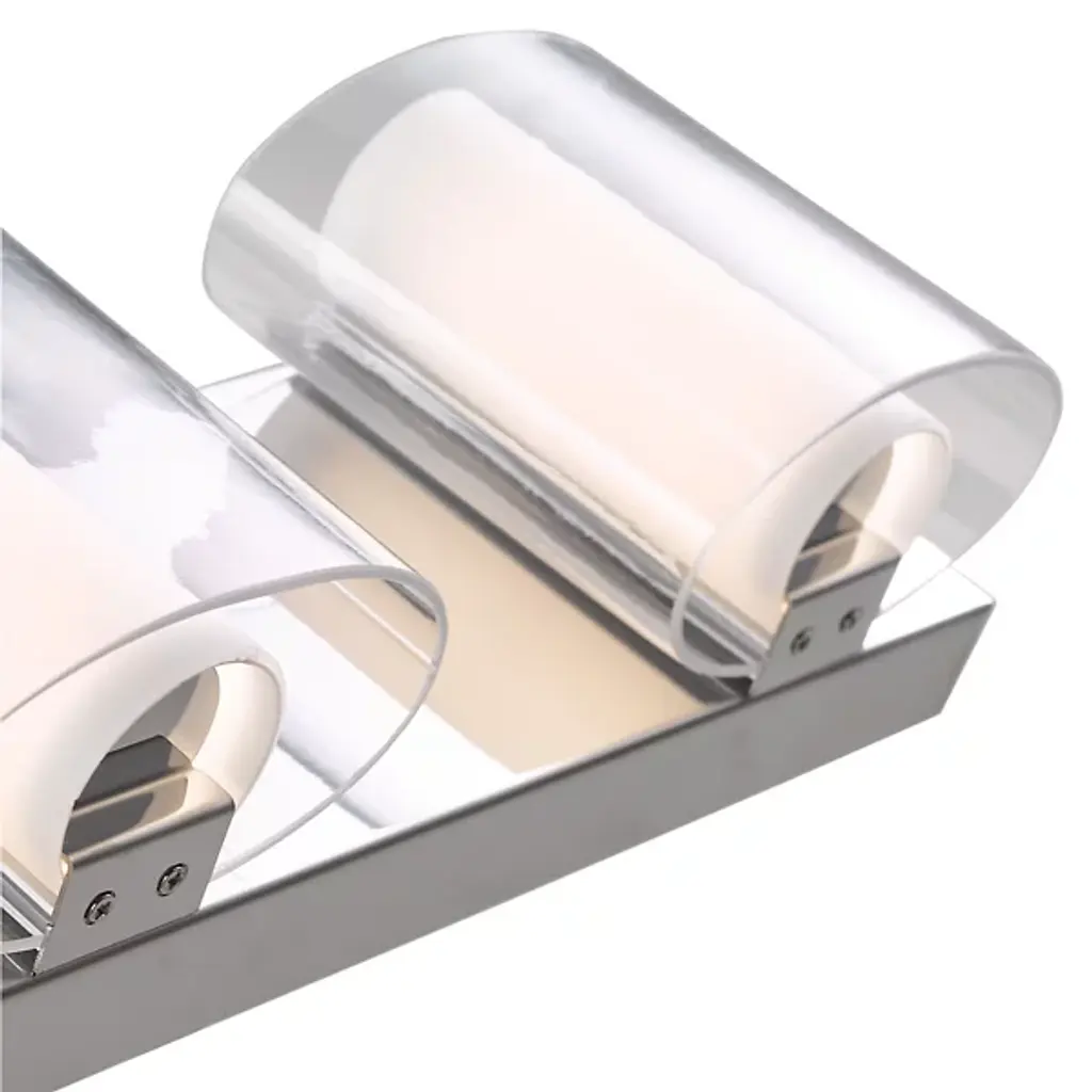 Soft, wrapping light for the minimalist sensibility. Bring together the refined elements of your bathroom with the Vitus LED Vanity Light from Huxe. The piece stamps its place in the modern and contemporary home through its simple and lovely forms. A rectangular metal backplate serves as the neat background for the bath bar’s lighting elements. Curved opal and clear glass shades pair up with intriguing contrast. LED light filters through the paired shades, accentuating their reflective and mellow tones. The bath bar’s radiant, diffused light fills one up with a sense of ease in front of the mirror.