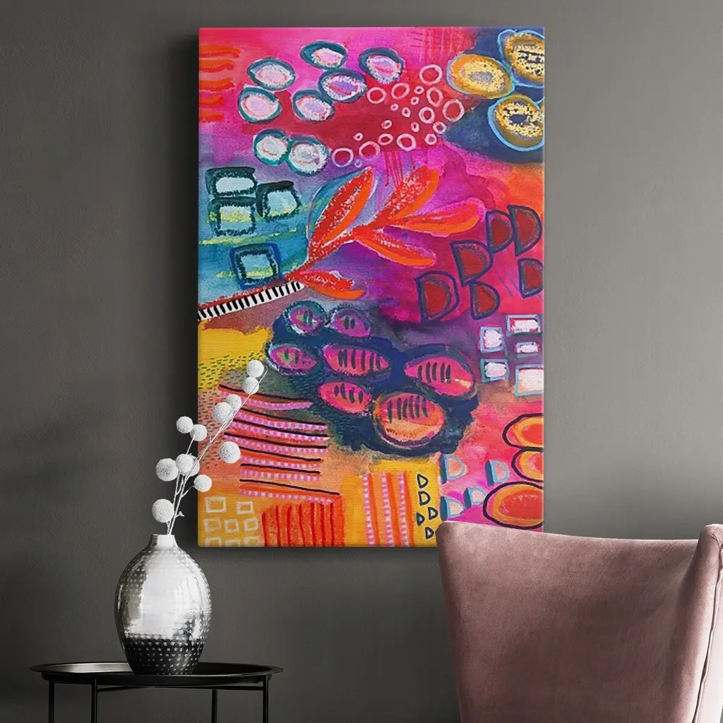 Vivaciously Changing I Premium Gallery Wrapped Canvas - Ready to Hang A premium hand stretched gallery wrapped canvas print created to last. Featuring a beveled a solid wood stretcher bar, each piece comes ready to hand 6 SIZES AVAILABLE 8''X12'' - Overall Size 12''X18'' - Overall Size 18''X27'' - Overall Size 24''x36'' - Overall Size 32''x48'' - Overall Size 40''x60'' - Overall Size Each piece is made to order. Built to Last Each piece comes ready to hang Solid wood stretcher Fade and Water resistant Made domestically