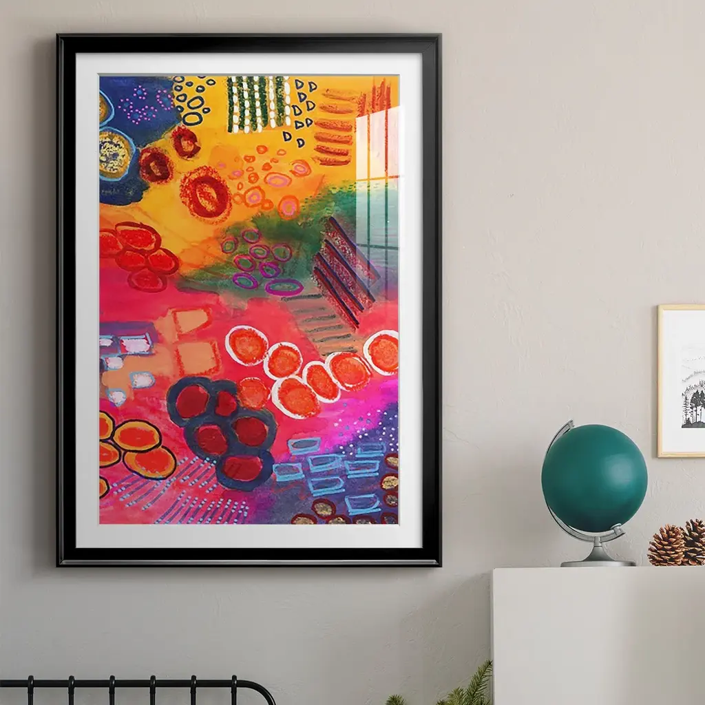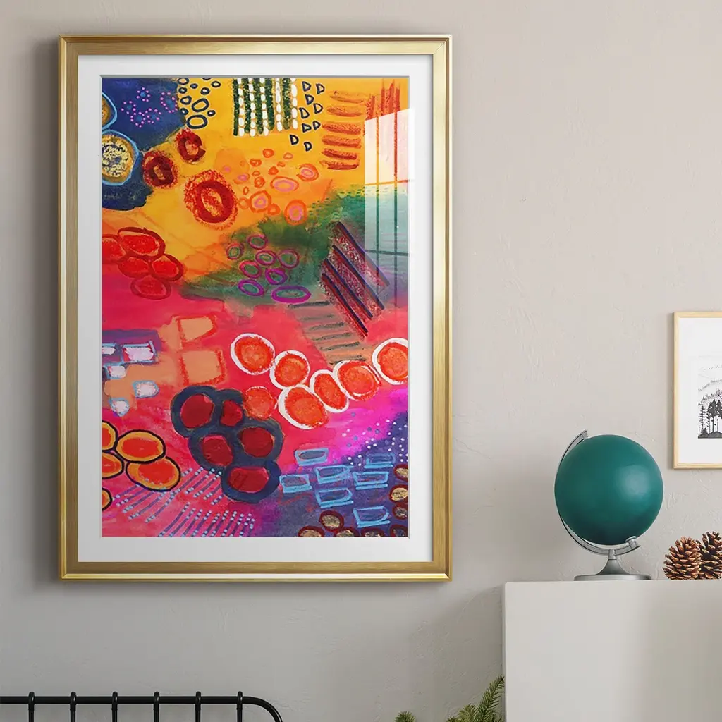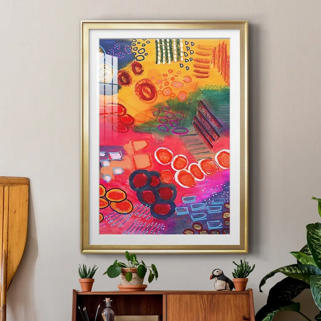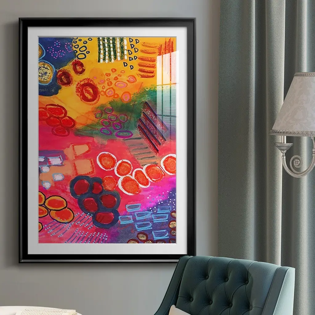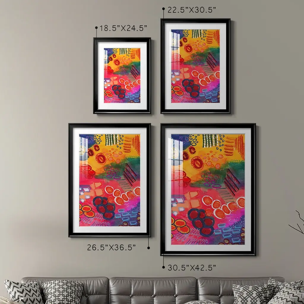 Vivaciously Changing II Premium Framed Print - Ready to Hang A Premium Framed Print created to last. Framed in distressed wood and available in an array of sizes and colors Featuring a beveled a solid wood stretcher bar, each piece comes ready to hand 4 SIZES AVAILABLE 30.5''X42.5'' - Overall Size 26.5'X36.5'' - Overall Size 22.5''x30.5'' - Overall Size 18.5''x24.5'' - Overall Size Each piece is made to order. Each piece comes with hanging hardware. Made in the USA Ready to Hang Giclee Paper Print Acrylic Glass Beveled Matt Board
