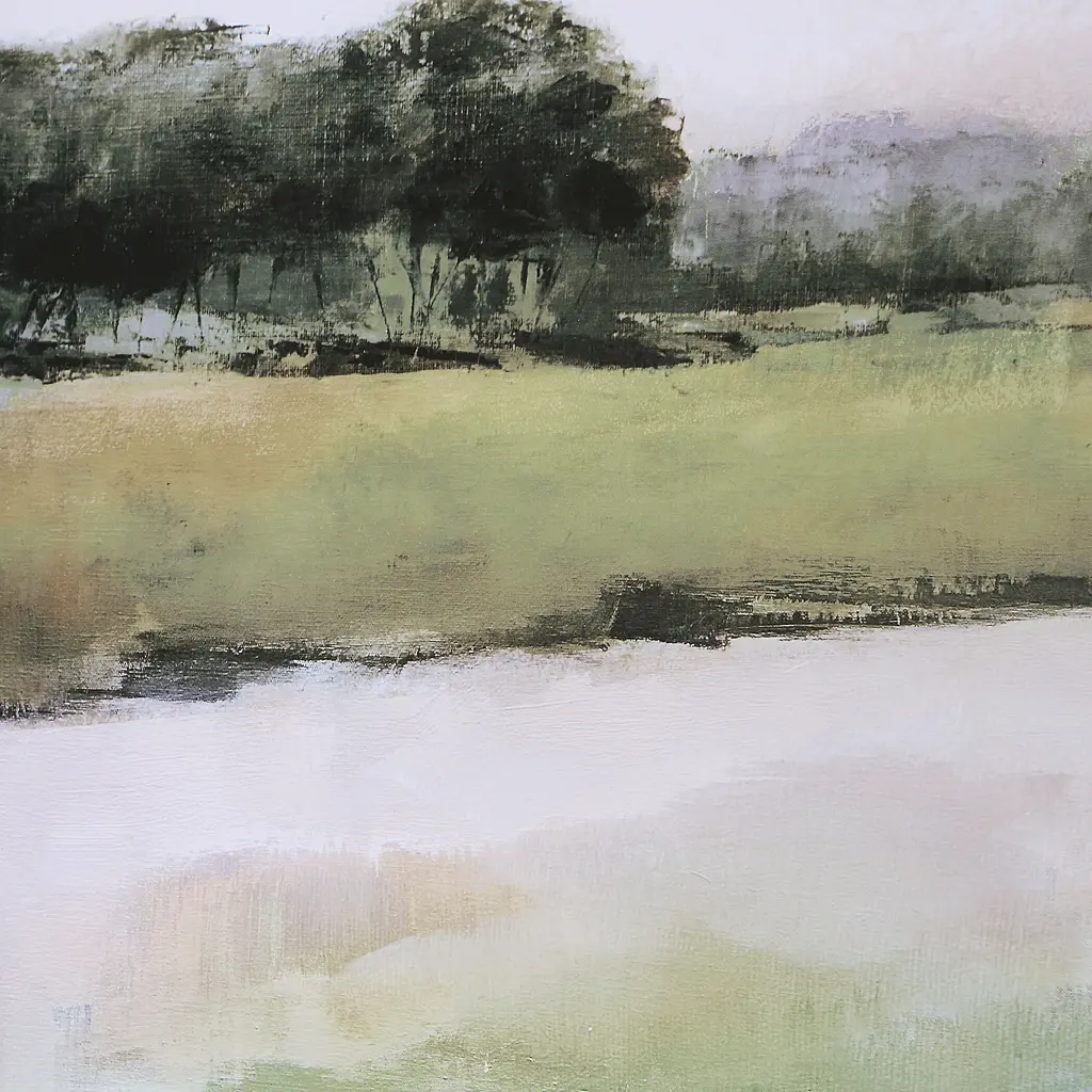 Depicting A Serene Landscape, This Set Of Two Prints Uses Neutral Tones Paired With Varying Green Shades From Deep Emerald To Chartreuse. Each Print Is Complemented By A Natural Linen Liner And A Pine Wood Frame With A Light White Wash. Artwork By Paul Duncan.