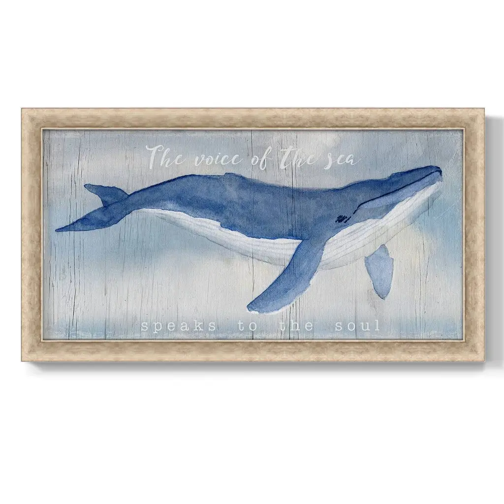 Voice of the Sea Premium Framed Canvas- Ready to Hang A Premium Framed Canvas created to last. Framed in distressed wood and available in an array of sizes and colors Featuring a beveled a solid wood stretcher bar, each piece comes ready to hand 3 SIZES AVAILABLE 21''X37'' - Overall Size 25''X45'' - Overall Size 29''x53'' - Overall Size Each piece is made to order. Each piece comes with hanging hardware. Made in the USA Ready to Hang Giclee Paper Print Acrylic Glass Beveled Matt Board