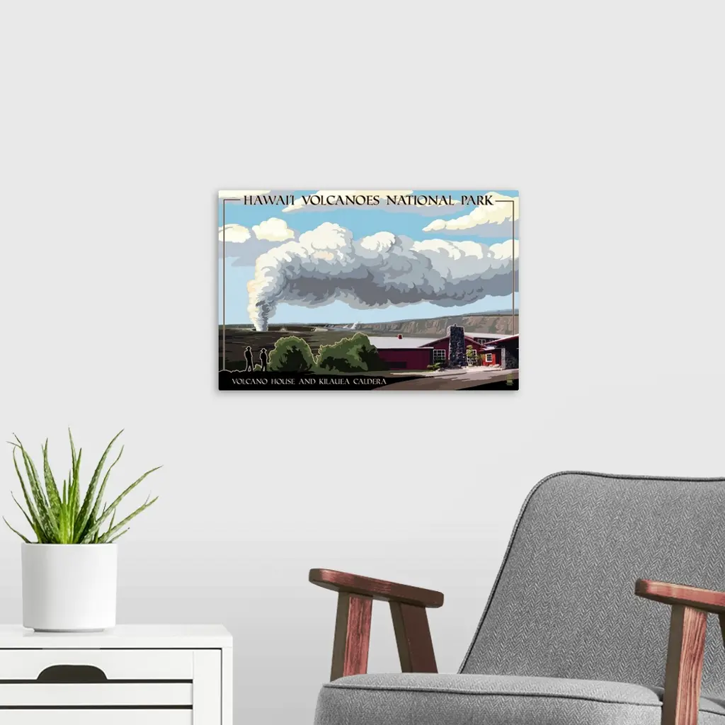 Volcano House - Hawaii Volcanoes National Park: Retro Travel Poster wall art for home and office decor. Discover canvas art prints, photos, mural, big canvas art and framed wall art in GreatBigCanvas.com's varied collections.