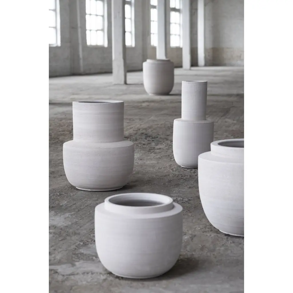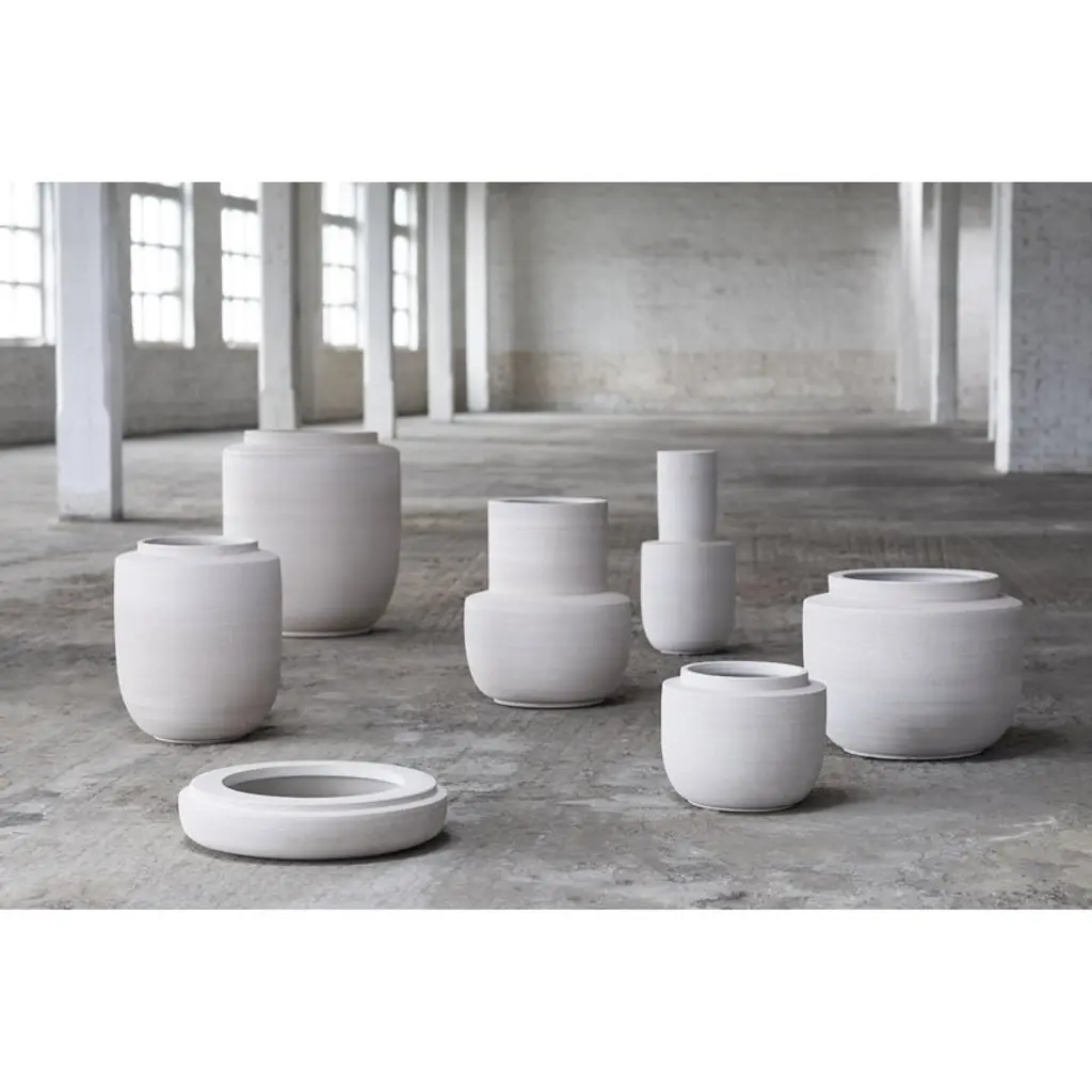 The Volumes pots by Serax play with different thicknesses and heights of seemingly simple shapes. Designed by Dutch Piet Boon, the collection’s subtle color palette was inspired by the paintings of Italian artist Giorgio Morandi. The Volumes pots are made of stoneware and available in a variety of sizes. As there is no drainage hole in the bottom, plants should not be planted directly in the pots – you can place a plastic pot and saucer inside them or use a plastic bag.