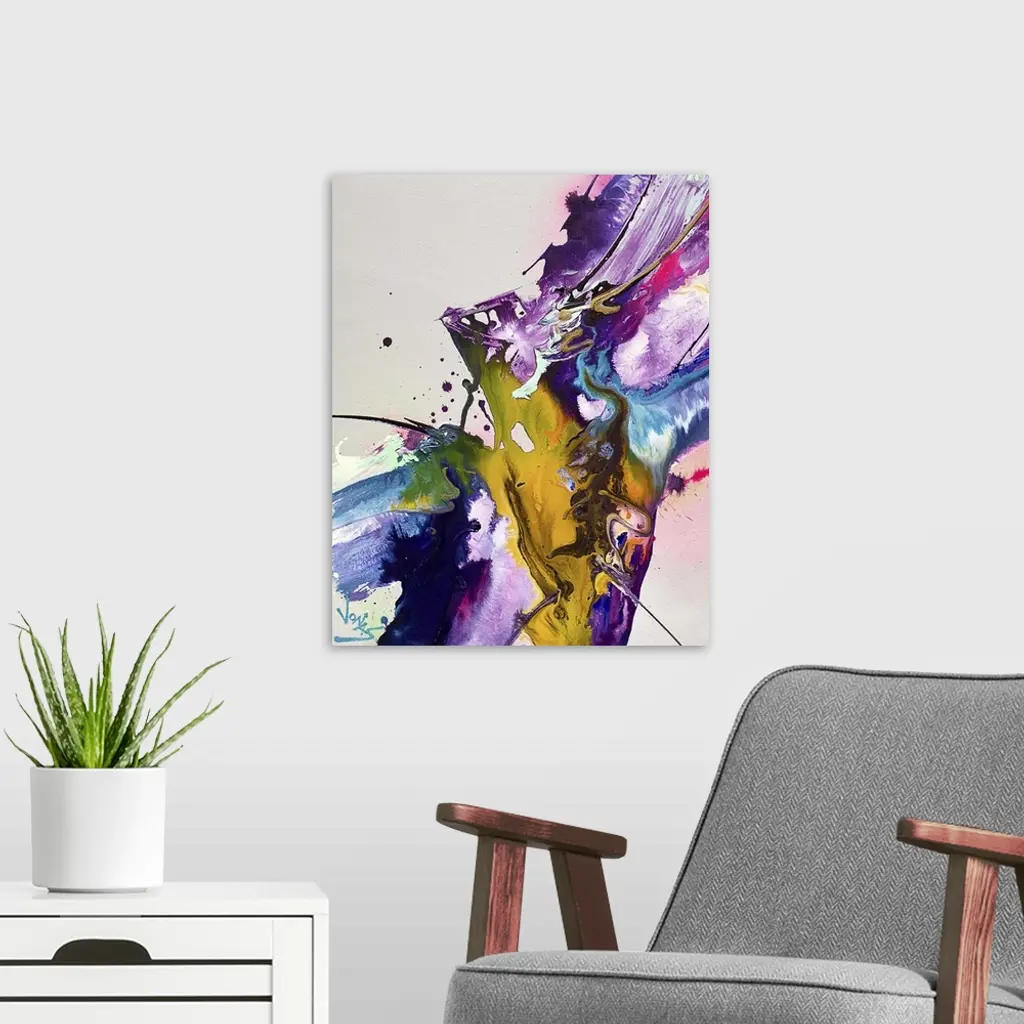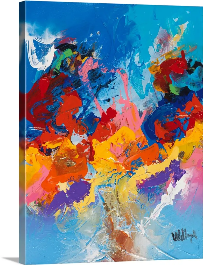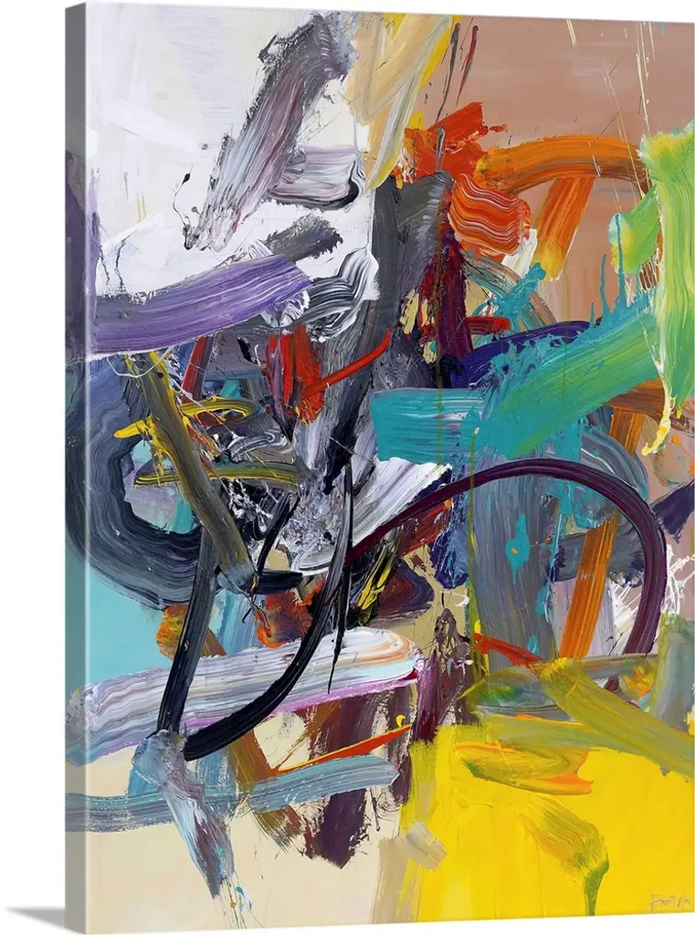 Contemporary abstract painting using a convergence of textures and tones spanning the gamut of color.