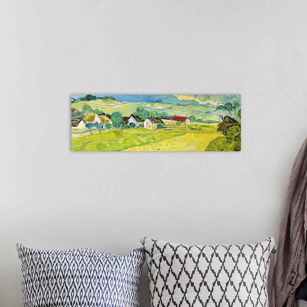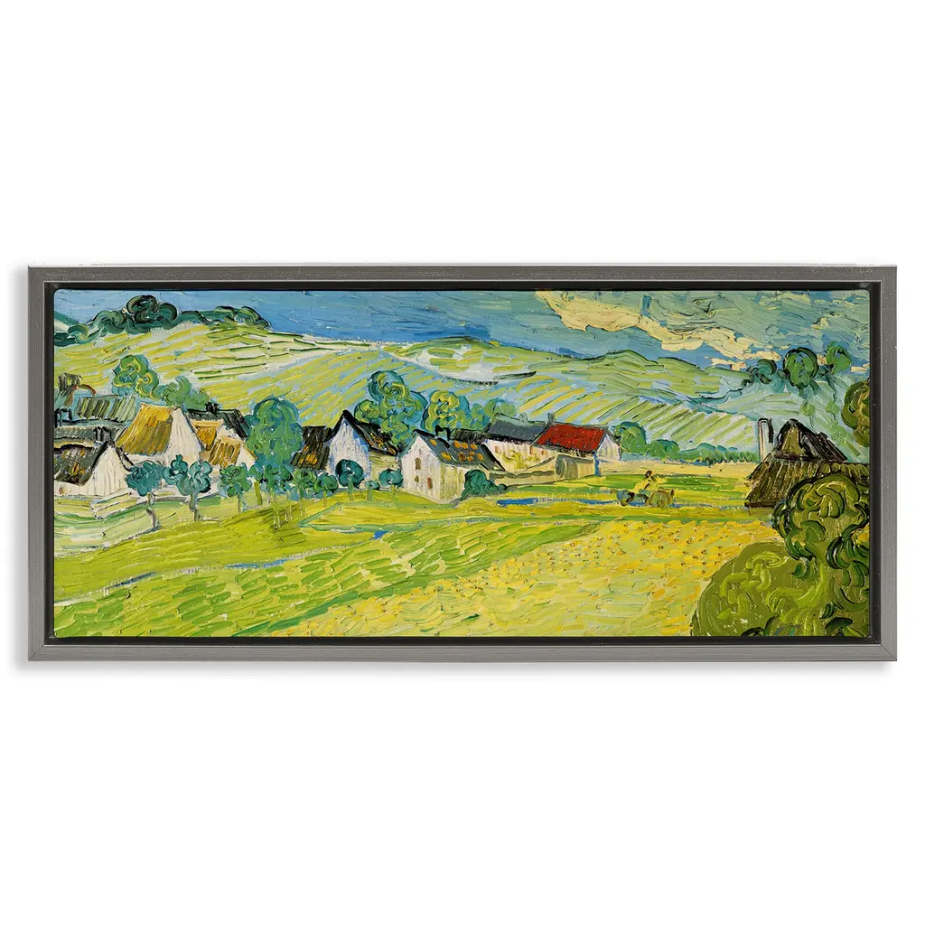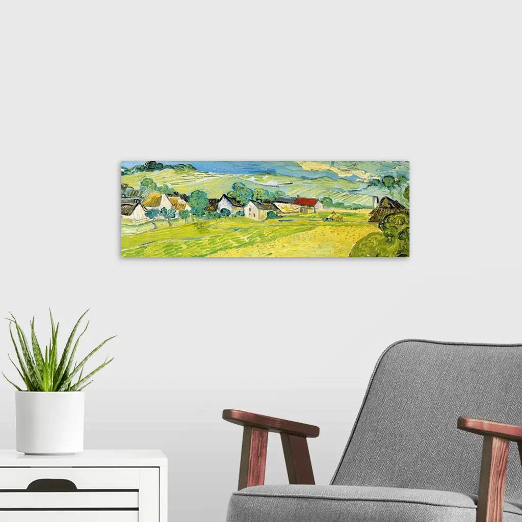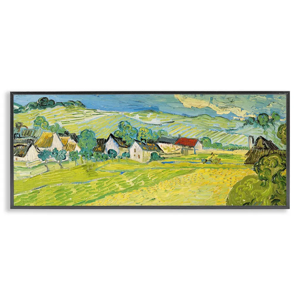 Painting of a beautiful landscape of a village and fields by Vincent Van Gogh.