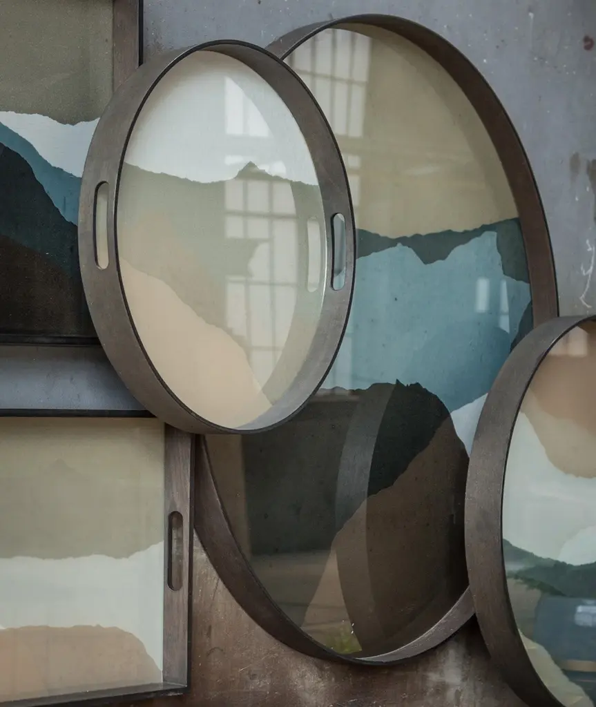 The Wabi Sabi collection of trays is inspired by nature. Designer Dawn Sweitzer explains: “While traveling through the blue ridge mountains, the vista became almost like a layered water color painting. Sky blues, grey and mist colors layered the horizon. As the sun was setting it took on a whole new color palette with warm autumn hues like sienna, sand, sepia.” Or how you can find beauty in the not-so-perfect.