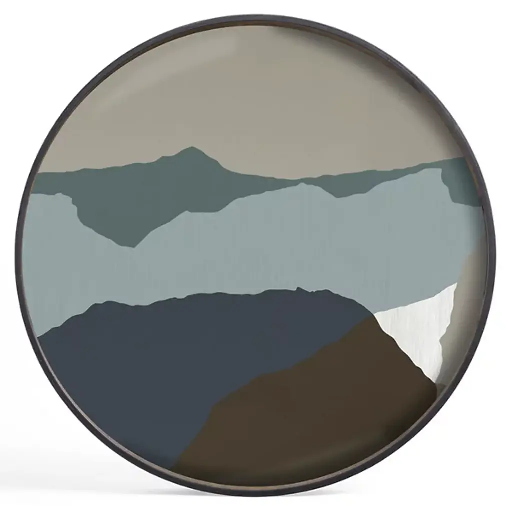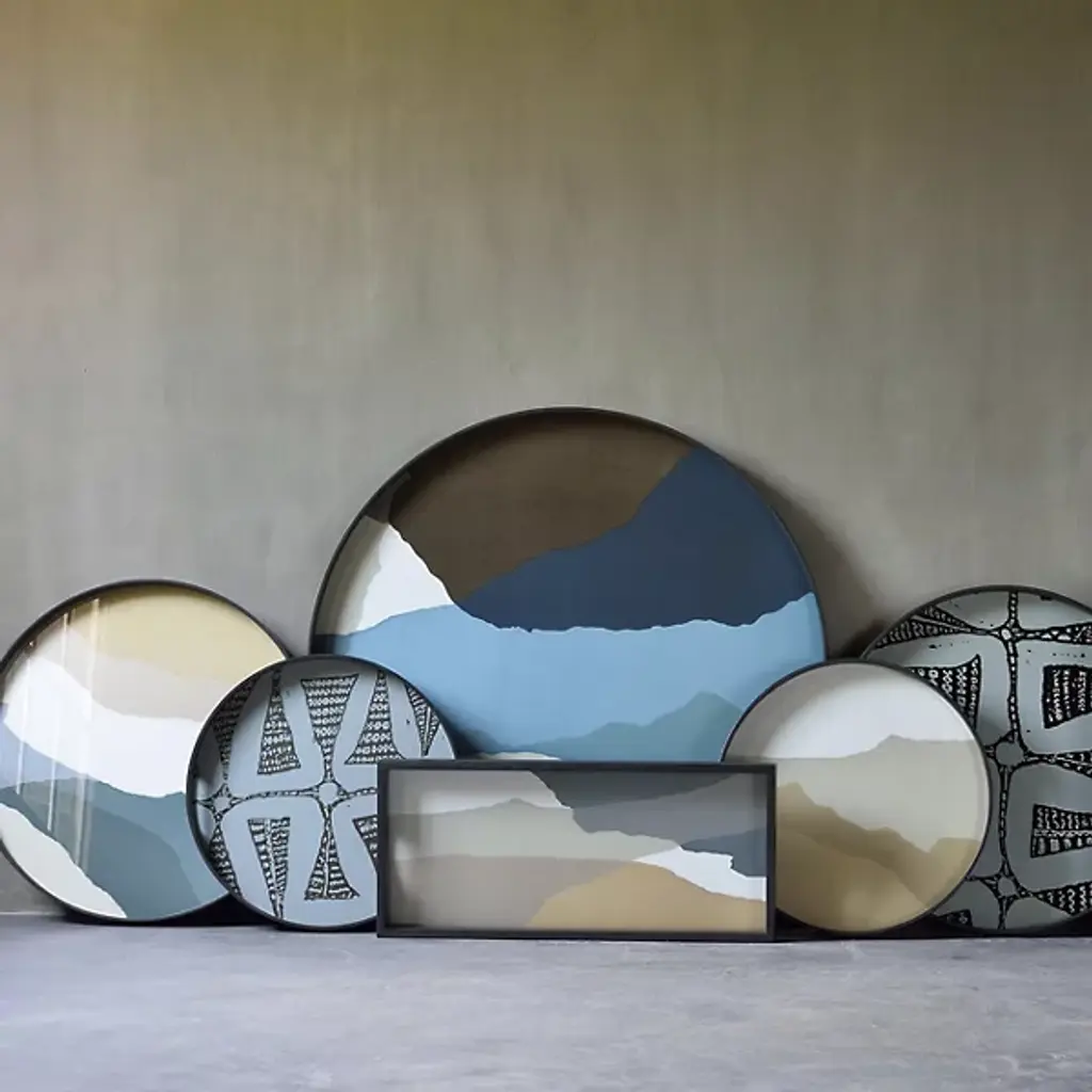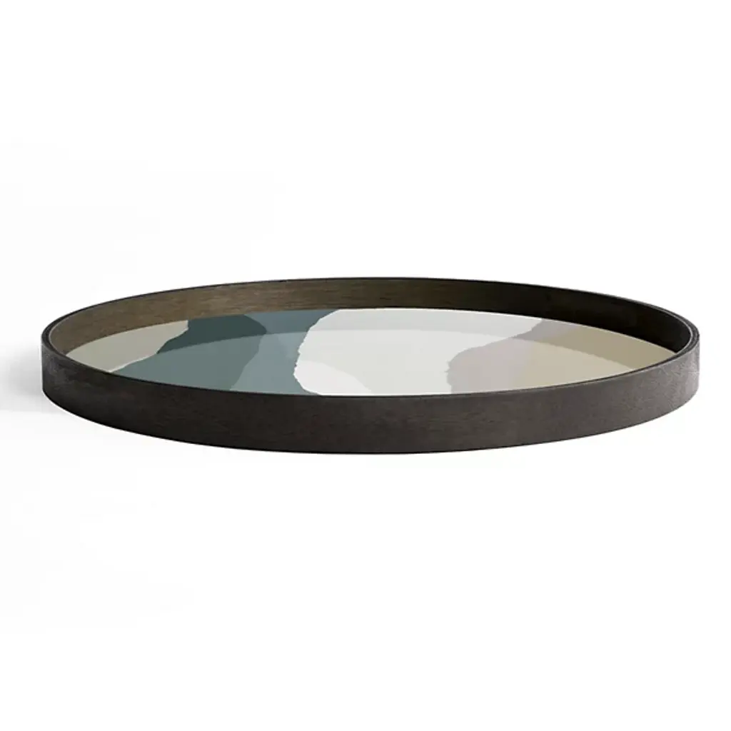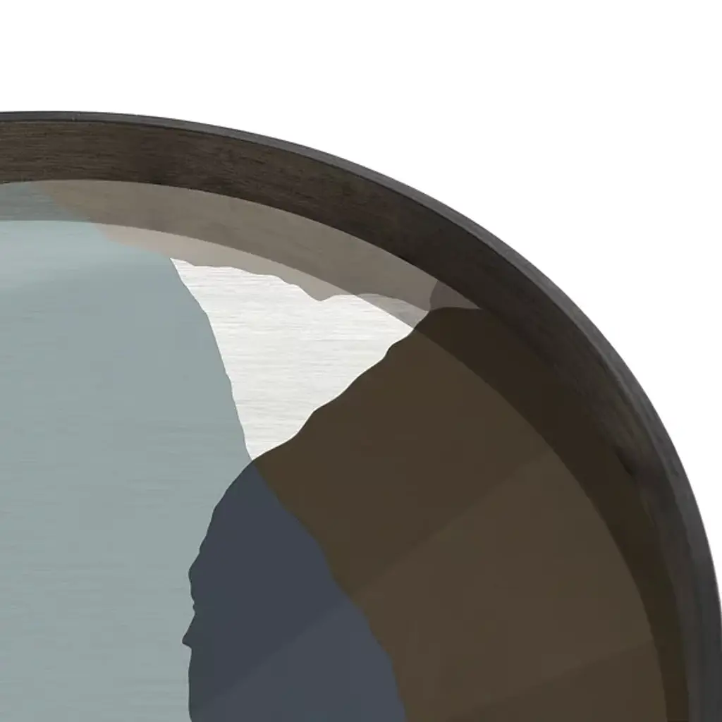 Nature’s layered hues inspire the contemporary Wabi Sabi Round Glass Tray from Ethnicraft. A daring design by Dawn Sweitzer derived from the Blue Ridge Mountains, it evokes misty mountain sunsets and warm autumnal tones as they filter through framed glass, finding beauty in imperfection according to the artistic principles of its namesake. Matched with a smooth wood rim, this artisanal tray carries natural inspiration onto tables or when displayed on its side as an art piece.