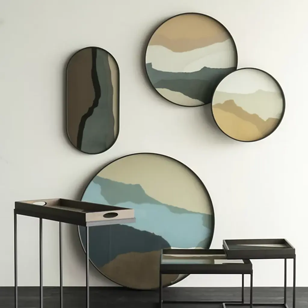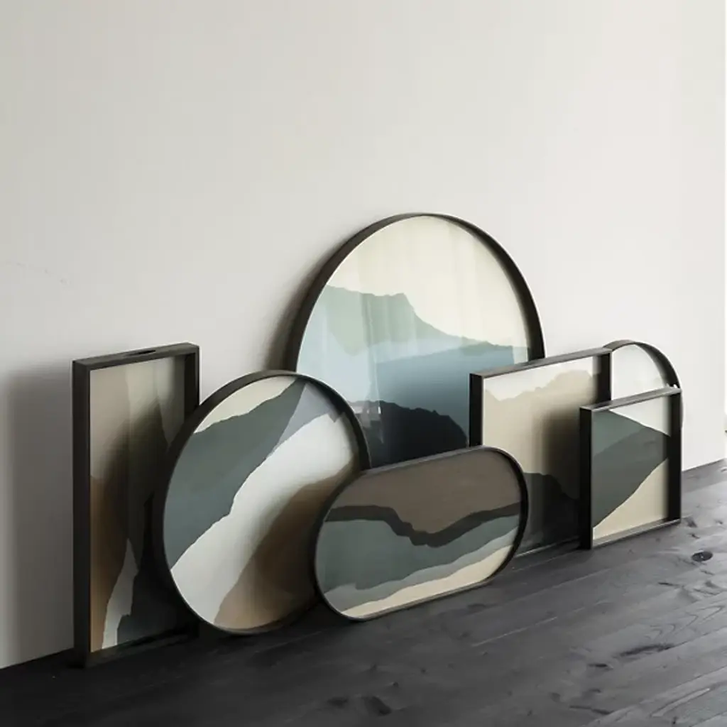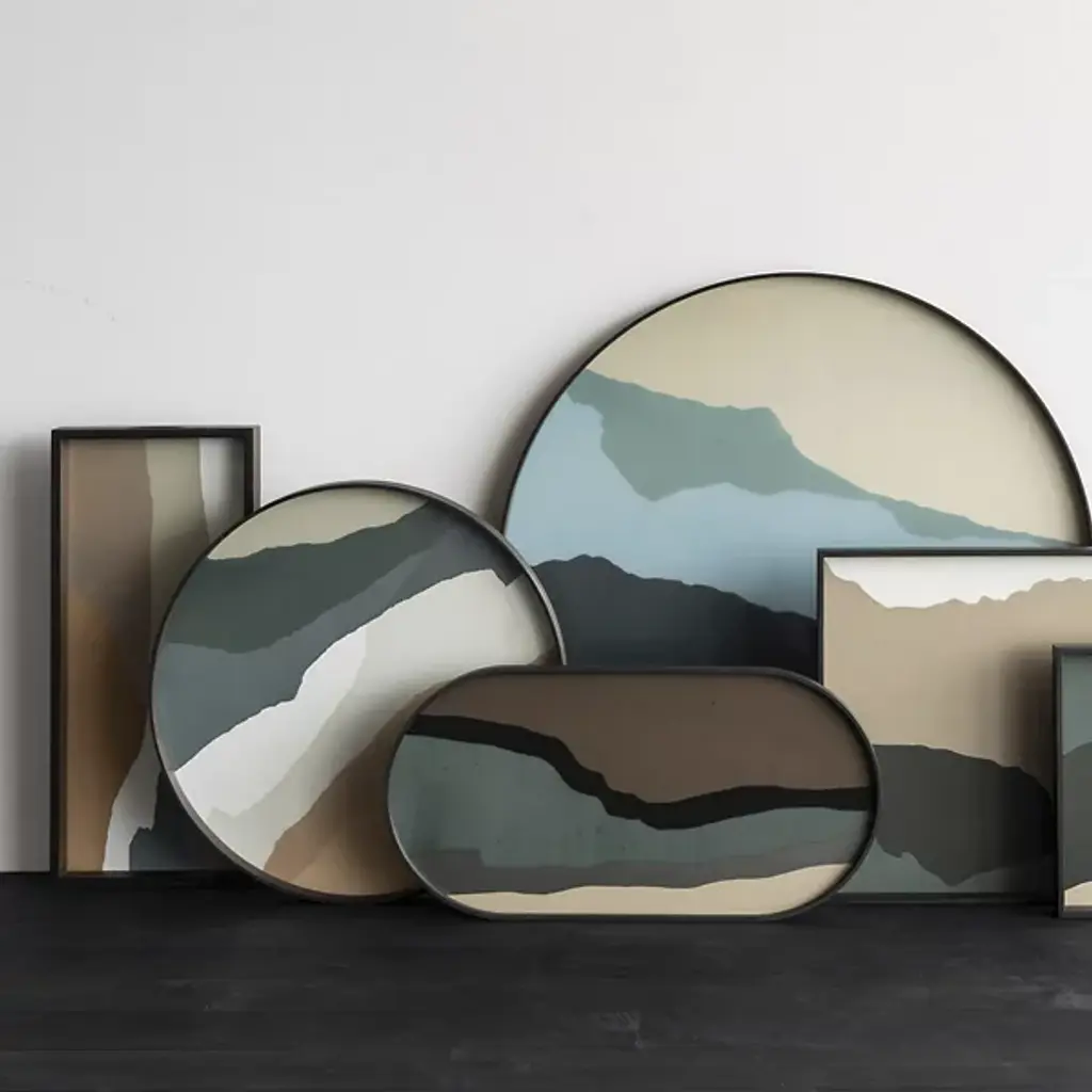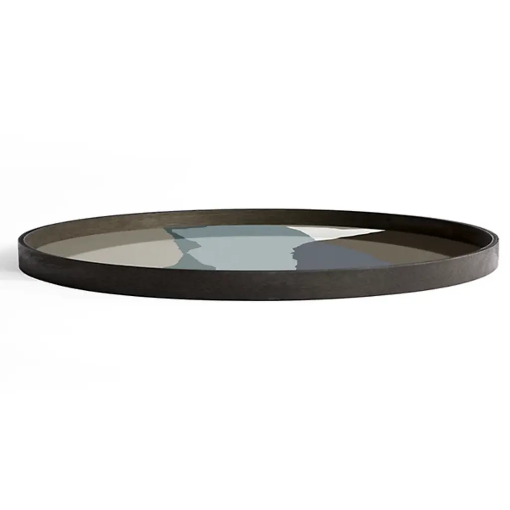 Nature’s layered hues inspire the contemporary Wabi Sabi Round Glass Tray from Ethnicraft. A daring design by Dawn Sweitzer derived from the Blue Ridge Mountains, it evokes misty mountain sunsets and warm autumnal tones as they filter through framed glass, finding beauty in imperfection according to the artistic principles of its namesake. Matched with a smooth wood rim, this artisanal tray carries natural inspiration onto tables or when displayed on its side as an art piece.
