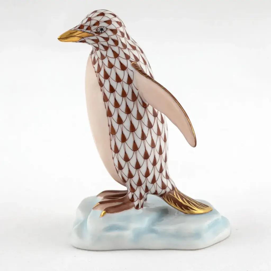 Endearing animals meek and bold, large and small, demure and majestic eagerly await the chance to melt your heart and warm your home. Each is brought to life by the skilled hands of artisans crafting and painting these charming porcelain creatures. The famous fishnet decor adorning many of the animals took form in 1858 when a Herend painter became inspired by a fishscale design he saw on a Chinese porcelain plate and painted a similar pattern onto a rooster figurine to imitate feathers. The rest is history, with the fishnet design now a Herend signature prized worldwide. Now the biggest porcelain manufactory in Europe, Herend was founded in 1826 to produce earthenware in the small Hungarian village for which it was named. At the time, Hungary was flooded with low-cost pottery, but in 1839, Mor Fischer became the Manufactory’s new owner and he decided to focus on producing dinnerware replacement pieces for Europe’s royal families to complement their valuable porcelain patterns from Germany and the Far East. As his client base grew, Fischer commissioned his artists to begin designing dinnerware patterns of their own. Queen Victoria’s 1851 purchase of a large set for Windsor Castle was a milestone, setting the stage for aristocrats throughout Europe to clamor for Herend in their estates. In the 1850s, Herend added meticulously-crafted figurines to its creations. Herend’s trademark fishnet pattern, which is widely recognized and prized as Herend’s signature design, started in 1858 when an artist who was intrigued with a Chinese plate’s fish scale design painted it onto a rooster figurine to imitate feathers.