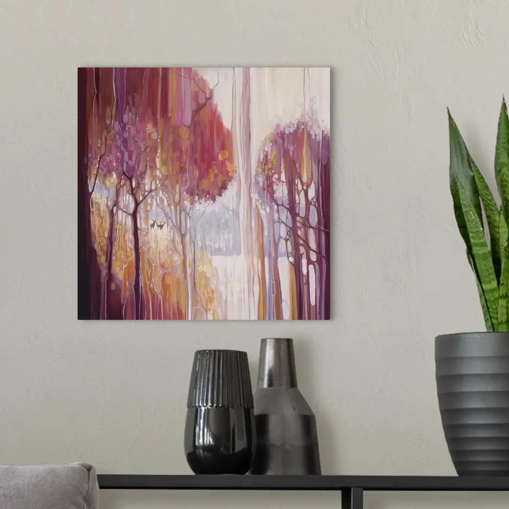Watercolor painting of a mystical forest in varies warm shades.