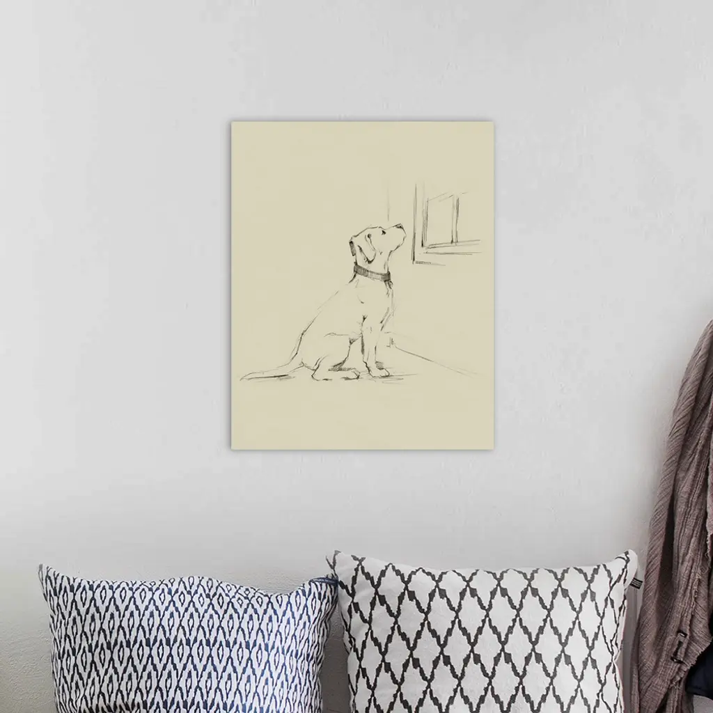 Sketch of a labrador retriever waiting at a window for its owner to come home.