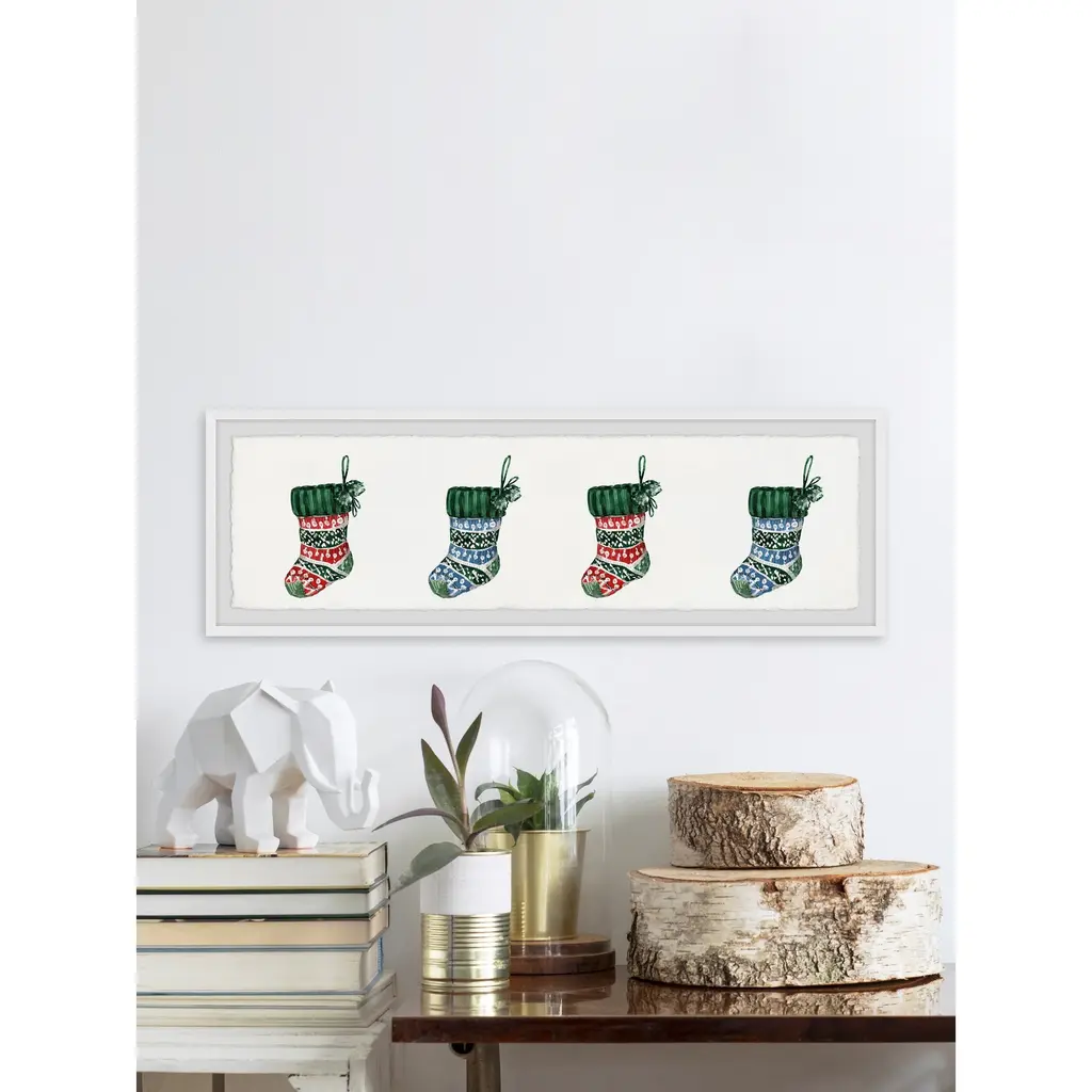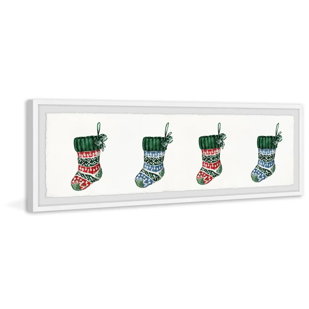 Perfect for families of four, this watercolor painting print features two red and two blue Christmas stockings. Proudly printed in the USA, this piece is printed on high quality archive paper and professionally hand-framed. With wall-mounting hooks included, this artful accent is ready to hang up as soon as it reaches your front door. • Top quality Giclee print on high resolution Archive Paper • Hand cut deckled edges • High quality durable non-warping frame • Finished under shatter resistant plexiglass • Arrives ready to hang • Includes a certificate of authenticity • Printed in the USA