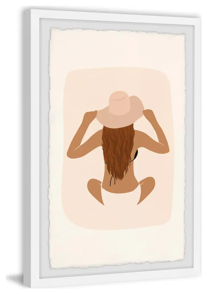 This drawing print showcases relaxation, featuring a woman in a bikini lounging on the sand with a sun hat on. Proudly printed in the USA, this piece is printed on high quality archive paper and professionally hand-framed. With wall-mounting hooks included, this artful accent is ready to hang up as soon as it reaches your front door.- Top quality Giclee print on high resolution Archive Paper- Hand cut deckled edges- High quality durable non-warping frame- Finished under shatter resistant plexiglass- Arrives ready to hang- Includes a certificate of authenticity- Printed in the USA