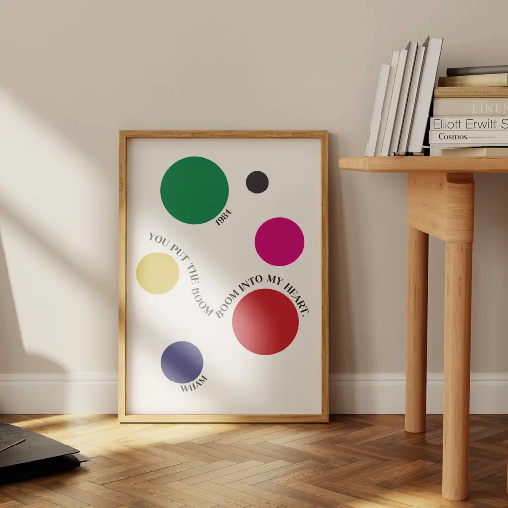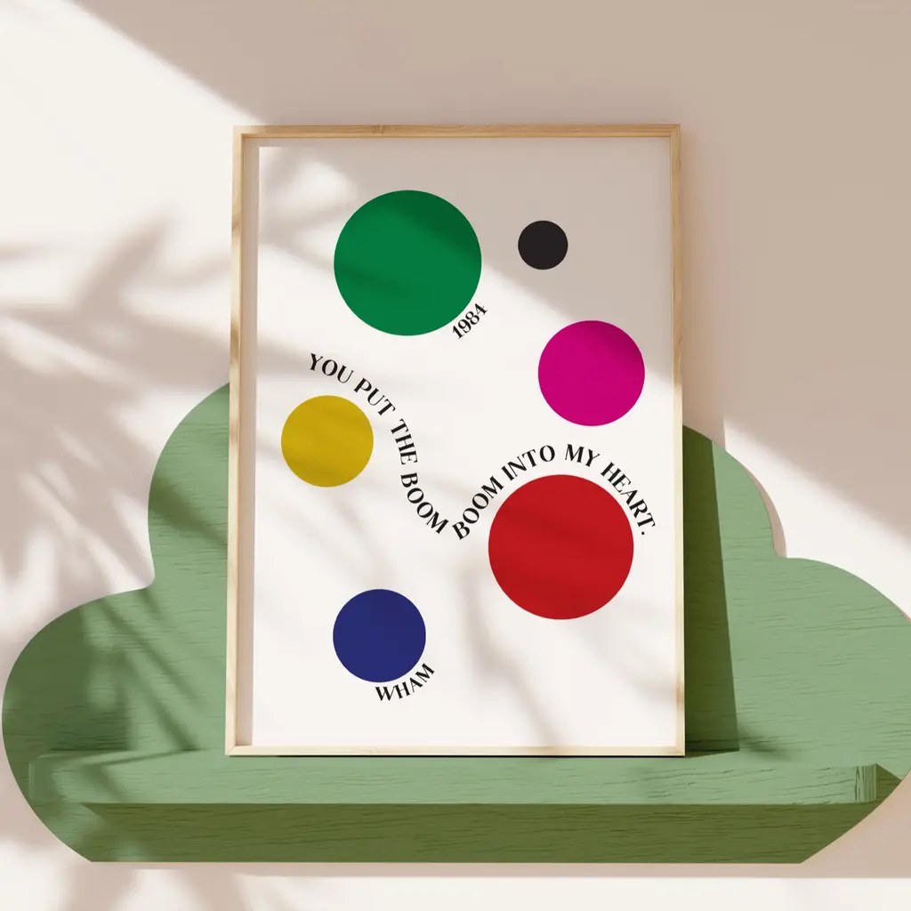 Wake me up before you go-go music inspired art print.Inspired by the 80s iconic hit by Wham. Our wake me up print combines fun retro colours with playful lyrics, perfect for adding some 80s souls to any space.Sold without frameGiclée printed on Munken pure smooth cream paper which is certified by the Rainforest Alliance Program for FSC® Standards.
