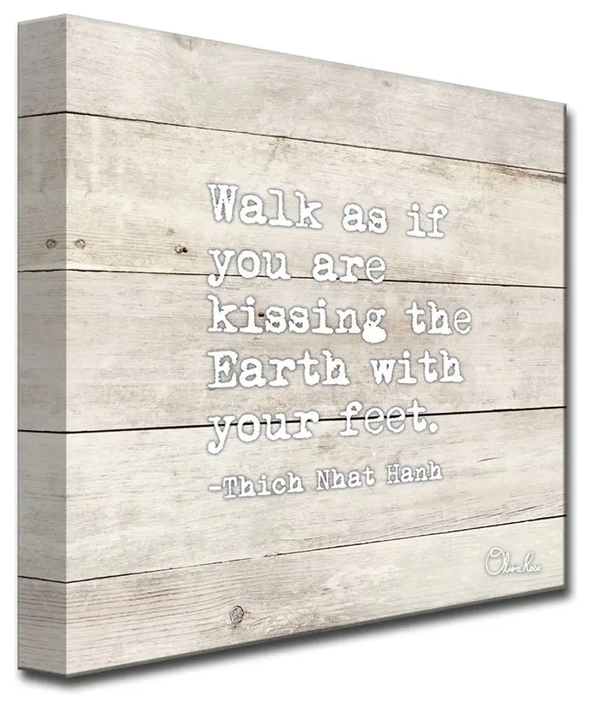 Be Inspired and Inspire with Olivia Rose ''Walk'' Inspirational Wall Art. ''Walk as if you are kissing the Earth'' is an essential view of how to treat our planet. Remind yourself everyday in this Textual Art Made in the USA by Ready2HangArt. The Canvas Art Print is produced on water resistant canvas with a UV-Resistant gloss coating and wrapped on a wood frame. Brand: Olivia RoseTitle: WalkOrientation: SquareShape: SquareMedium: Wrapped CanvasManufacturer: Ready2HangArtModel No. VMOR007Colors: Brown, Wood GrainReady2HangArt is an American small business, dedicated to enhancing Wall Decor with innovative designs, and locally made products at a competitive value. Proudly Made in the USA -
