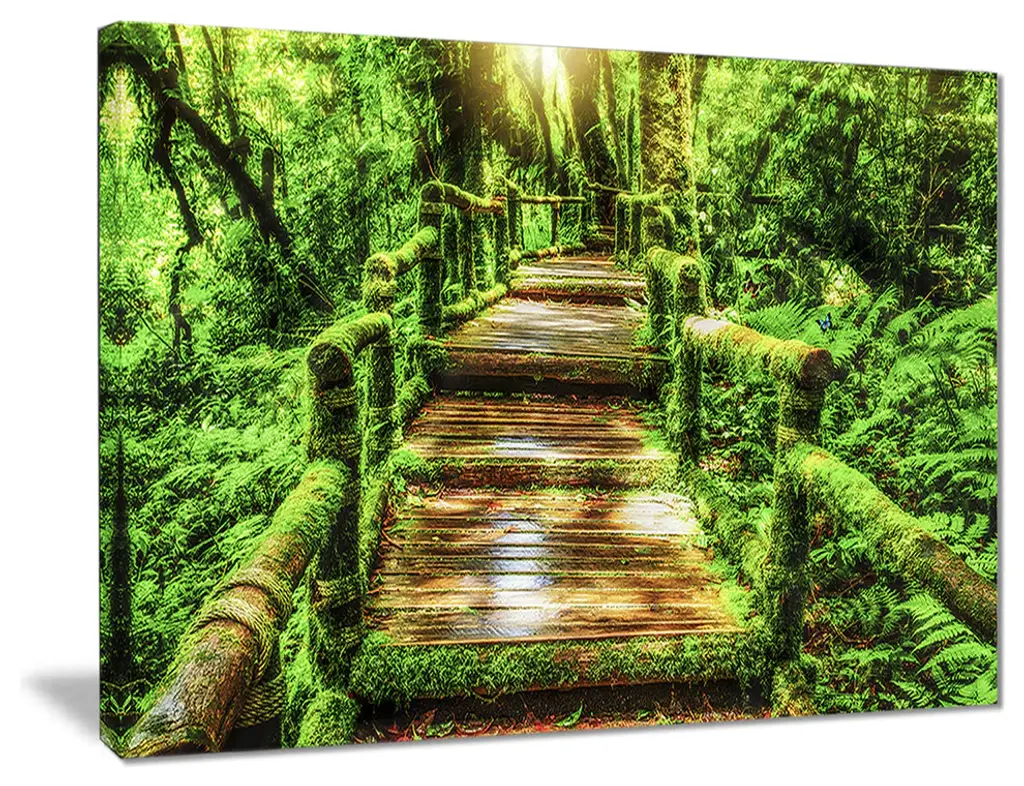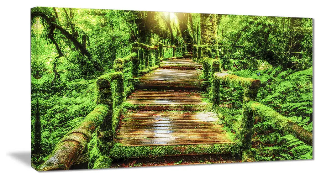 Bring contemporary abstraction to your home with this large 36W x 28H Metal Wall Art. This Walk Way in Deep Forest Metal Artwork makes it the focal point of any room or office. - White gloss coating ensures colors are extra vibrant with light reflection.- Aluminum grade sheet metal with 1-inch mounting frame on the back giving the illusion that the artwork is floating on the wall.- Mounting brackets are included along with instructions.- High quality digital images are created directly into a glossy aluminum panel producing a stunning and captivating print into the glossy finish of the metal.- Water, fire and scratch resistant HD aluminum panels.- Looks better than any photo paper and guaranteed to last at least 20 years- Easy to clean with a microfiber cloth. Colors are far superior to regular canvas art. - Easy to hang