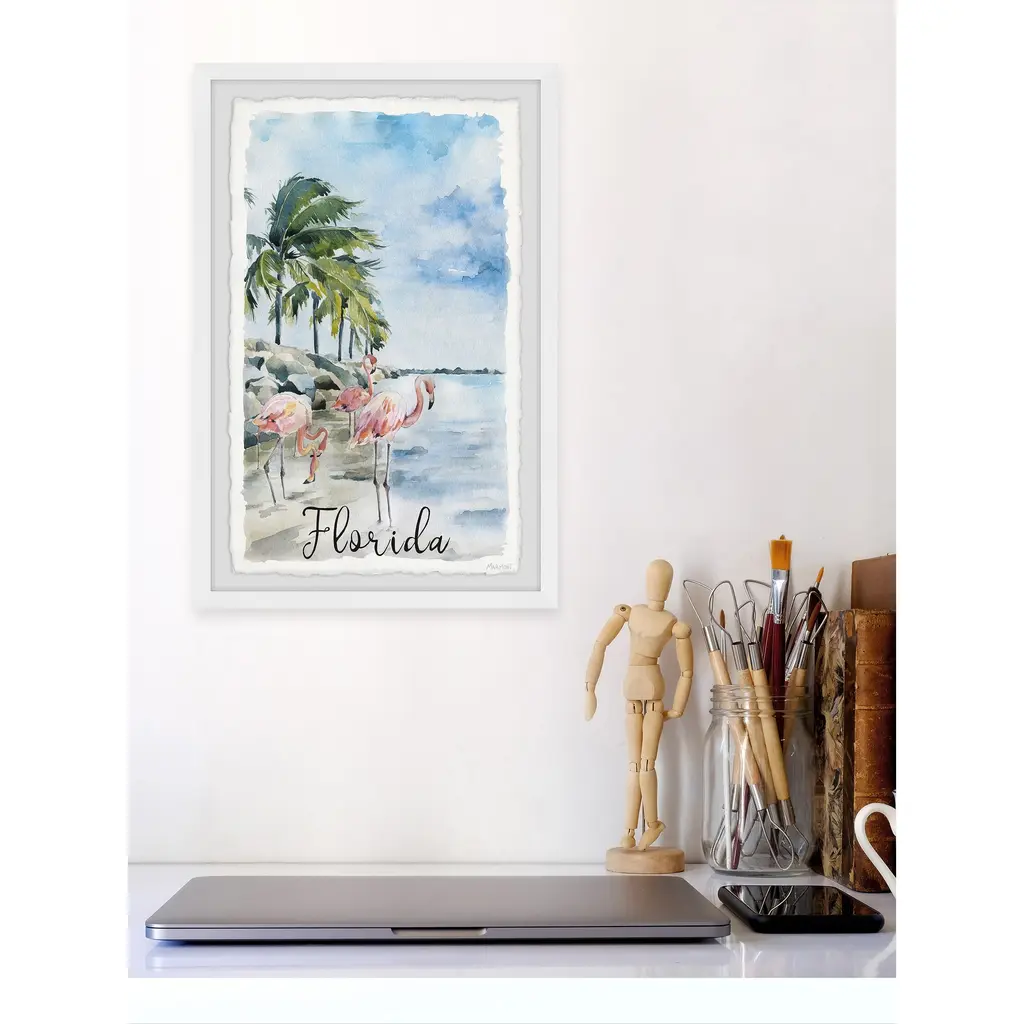 Featuring a trio of hot pink flamingos exploring the shore, this print brings together the unmatchable wildlife and gorgeous nature of the Florida coast. Proudly printed in the USA, this piece is printed on high quality archive paper and professionally hand-framed. With wall-mounting hooks included, this artful accent is ready to hang up as soon as it reaches your front door. • Top quality Giclee print on high resolution Archive Paper • Hand cut deckled edges • High quality durable non-warping frame • Finished under shatter resistant plexiglass • Arrives ready to hang • Includes a certificate of authenticity • Printed in the USA