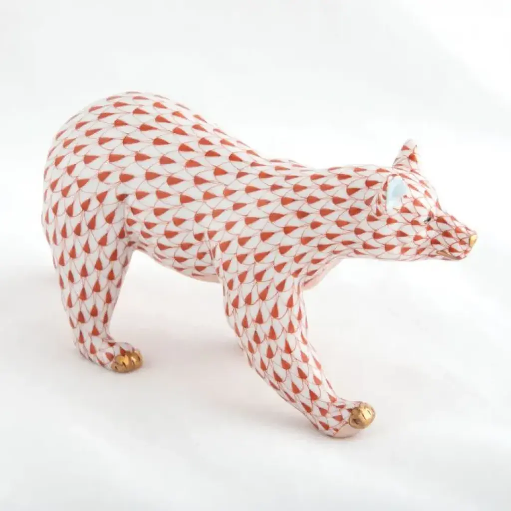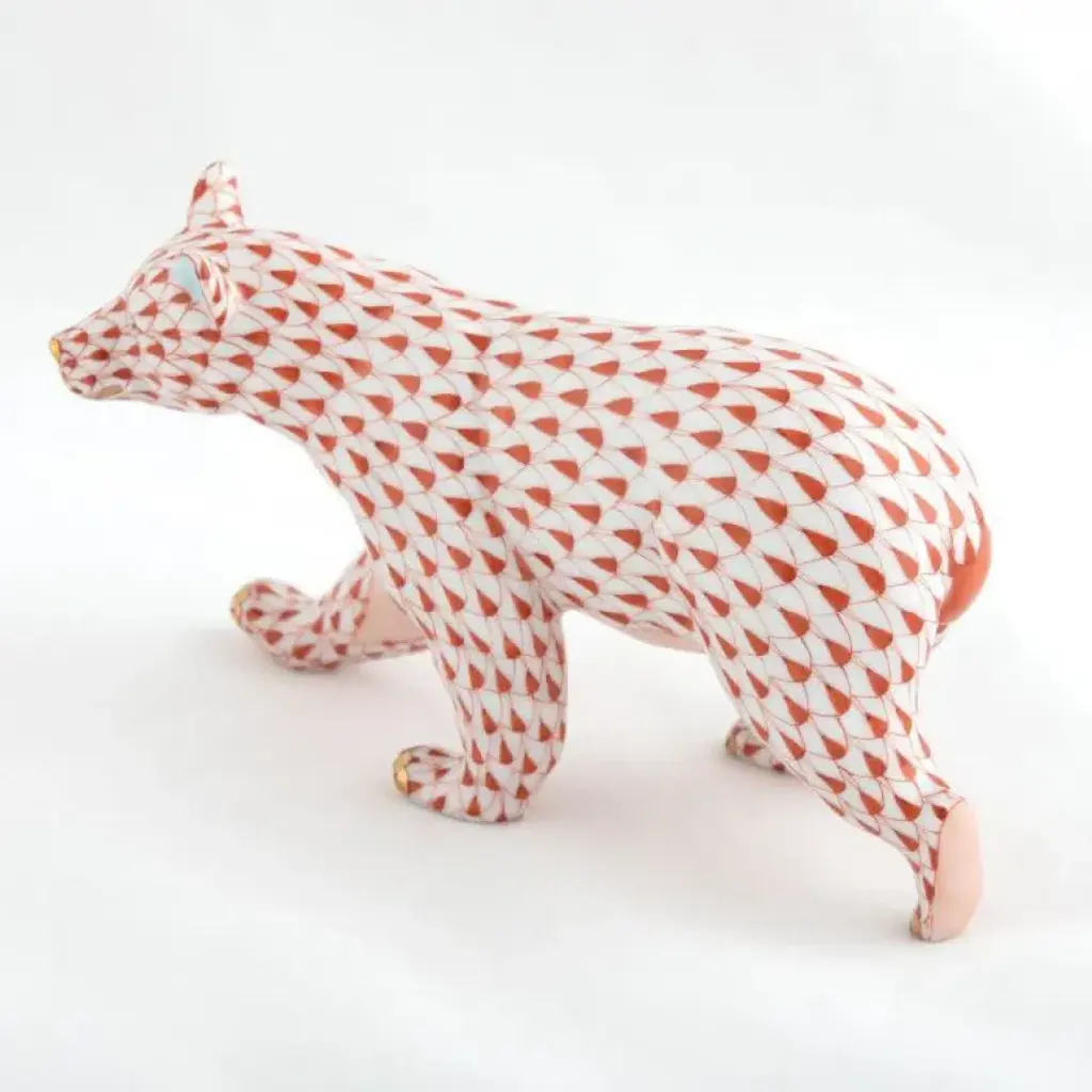 Endearing animals meek and bold, large and small, demure and majestic eagerly await the chance to melt your heart and warm your home. Each is brought to life by the skilled hands of artisans crafting and painting these charming porcelain creatures. The famous fishnet décor adorning many of the animals took form in 1858 when a Herend painter became inspired by a fishscale design he saw on a Chinese porcelain plate and painted a similar pattern onto a rooster figurine to imitate feathers. The rest is history, with the fishnet design now a Herend signature prized worldwide. Now the biggest porcelain manufactory in Europe, Herend was founded in 1826 to produce earthenware in the small Hungarian village for which it was named. At the time, Hungary was flooded with low-cost pottery, but in 1839, Mor Fischer became the Manufactory’s new owner and he decided to focus on producing dinnerware replacement pieces for Europe’s royal families to complement their valuable porcelain patterns from Germany and the Far East. As his client base grew, Fischer commissioned his artists to begin designing dinnerware patterns of their own. Queen Victoria’s 1851 purchase of a large set for Windsor Castle was a milestone, setting the stage for aristocrats throughout Europe to clamor for Herend in their estates. In the 1850s, Herend added meticulously-crafted figurines to its creations. Herend’s trademark fishnet pattern, which is widely recognized and prized as Herend’s signature design, started in 1858 when an artist who was intrigued with a Chinese plate’s fish scale design painted it onto a rooster figurine to imitate feathers.