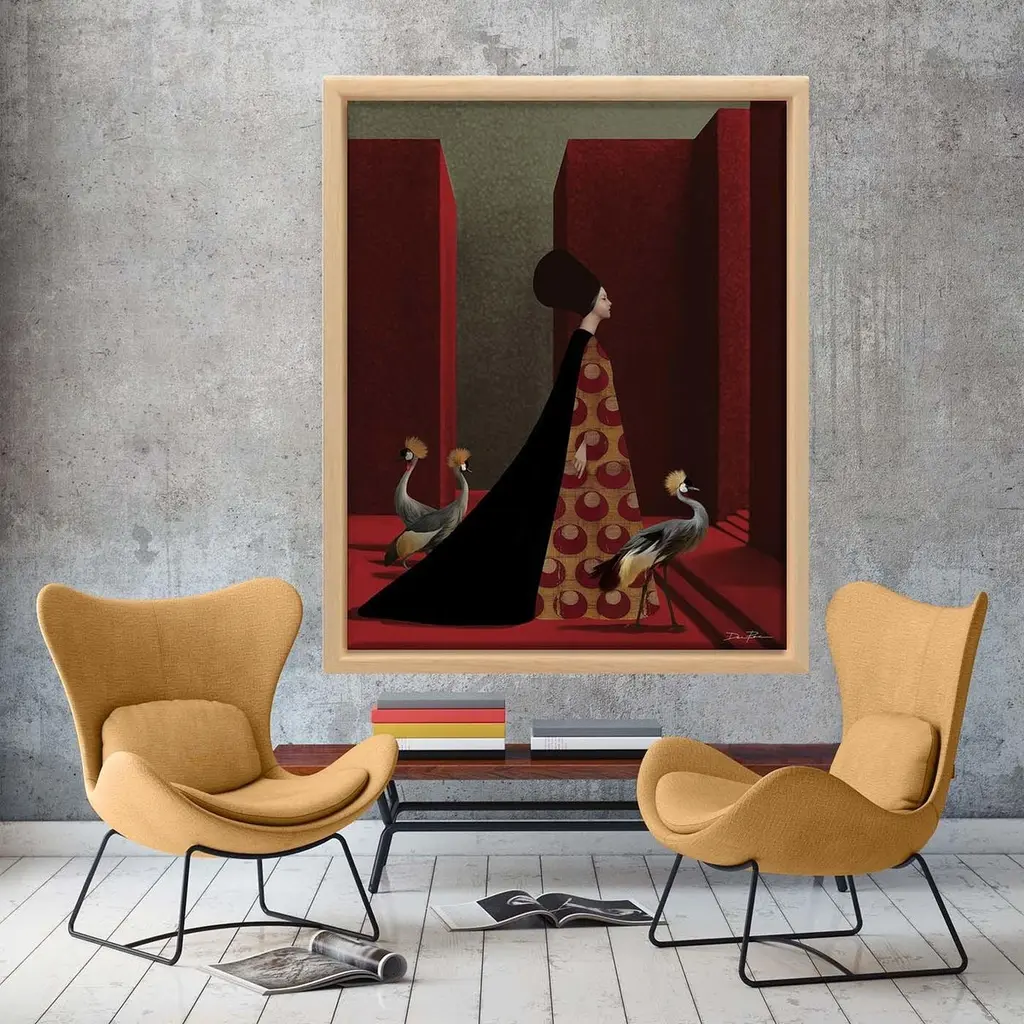 Female sacredness is recurrent in this artist's pop-surrealist works. The splendid priestess crosses the metaphysical architecture of her palace, embodying the archaic mystery of femininity. On a panel of fine cotton pictorial canvas, the piece is complete with an American box frame in basswood. Signed and numbered limited edition with “Certificate of Authenticity”.Year of Creation: 2015Edition Number: 1/300Artist’s Signature: Printed on the Canvas + original signature on Limited Edition Certificate which will be given with the purchase of the itemCondition: NewMaterials: Cotton canvas, basswood box frame, dried fir structure