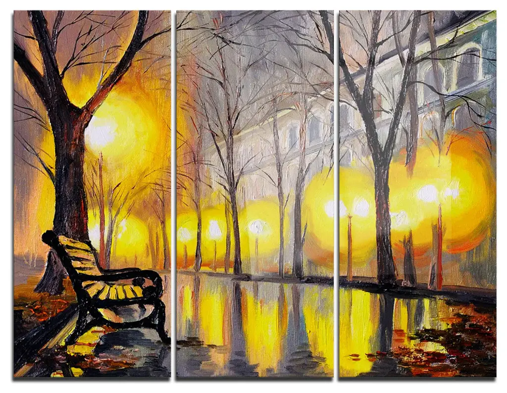 "Walking In Park" Digital Metal Wall Art, 3 Panels, 36"x28"