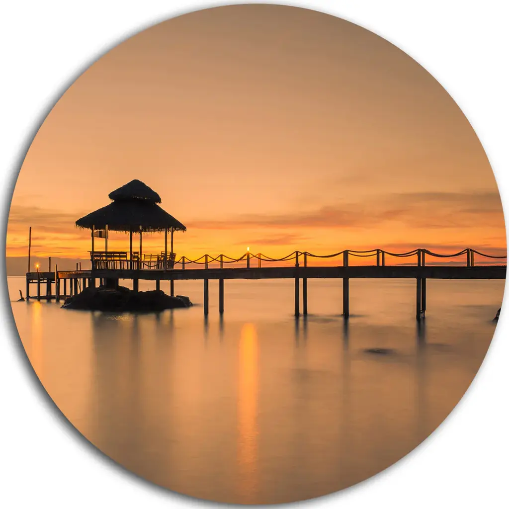 Walking Path To Temple In The Sea, Sea Bridge Round Wall Art, 11"