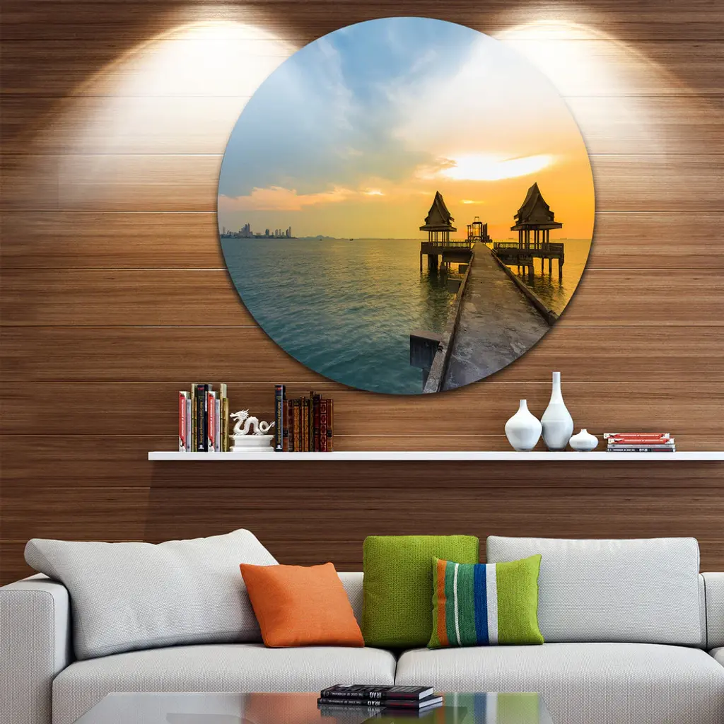 Walking Path To Temple In The Sea, Sea Bridge Round Wall Art, 23"