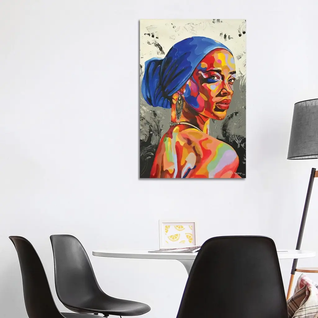 The Indira African Painting Wall Art Print brings vibrant jewel tones and bold composition to your space. This large art print is created on museum-quality Hahnemuhle archival paper, ensuring rich color and long-lasting vibrancy. Each piece is signed, numbered, and includes a certificate of authenticity, making it a collectible addition to your home. Whether displayed as a standalone focal point or part of a gallery wall, this wall art print adds depth, elegance, and cultural significance to any room. Perfect for the living room, bedroom, dining room, hallway, kitchen, or entryway, it blends beautifully into modern or eclectic decor. Available unframed or with premium framing options., Living Room: Use the art print to create a stunning focal point above a sofa or mantel, Entryway or Foyer: Make a lasting first impression with vibrant wall art print , Bedroom: Add warmth and personality to the wall space above the bed or dresser.