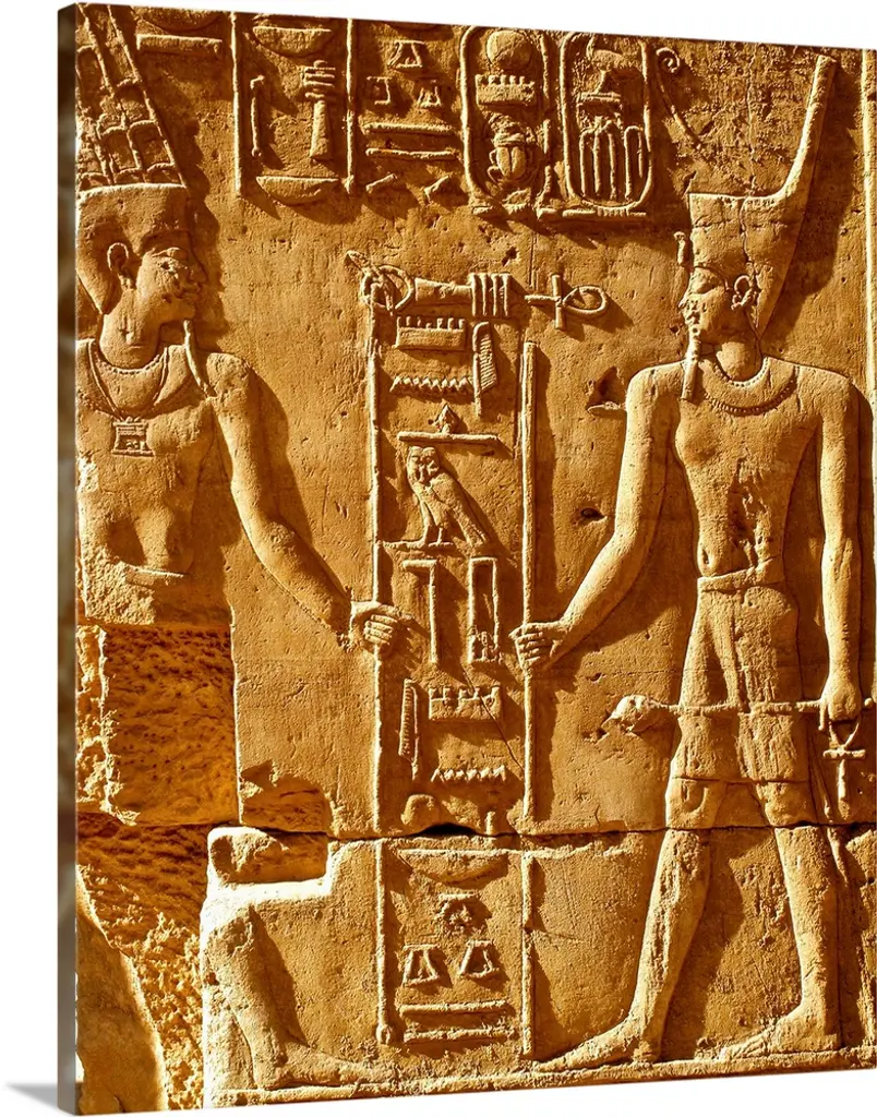 Wall decoration, bas relief in patinated bronze in the taste of ancient Egypt, 20th century.Wall decoration, bas relief in the taste of ancient Egypt in patinated bronze. Originally, these figures, which adorned the walls of temples, symbolised fertility offerings to the Egyptian gods, 20th century.H: 86cm, W: 65cm, D: 4cmProduction time: 2-3 weeks