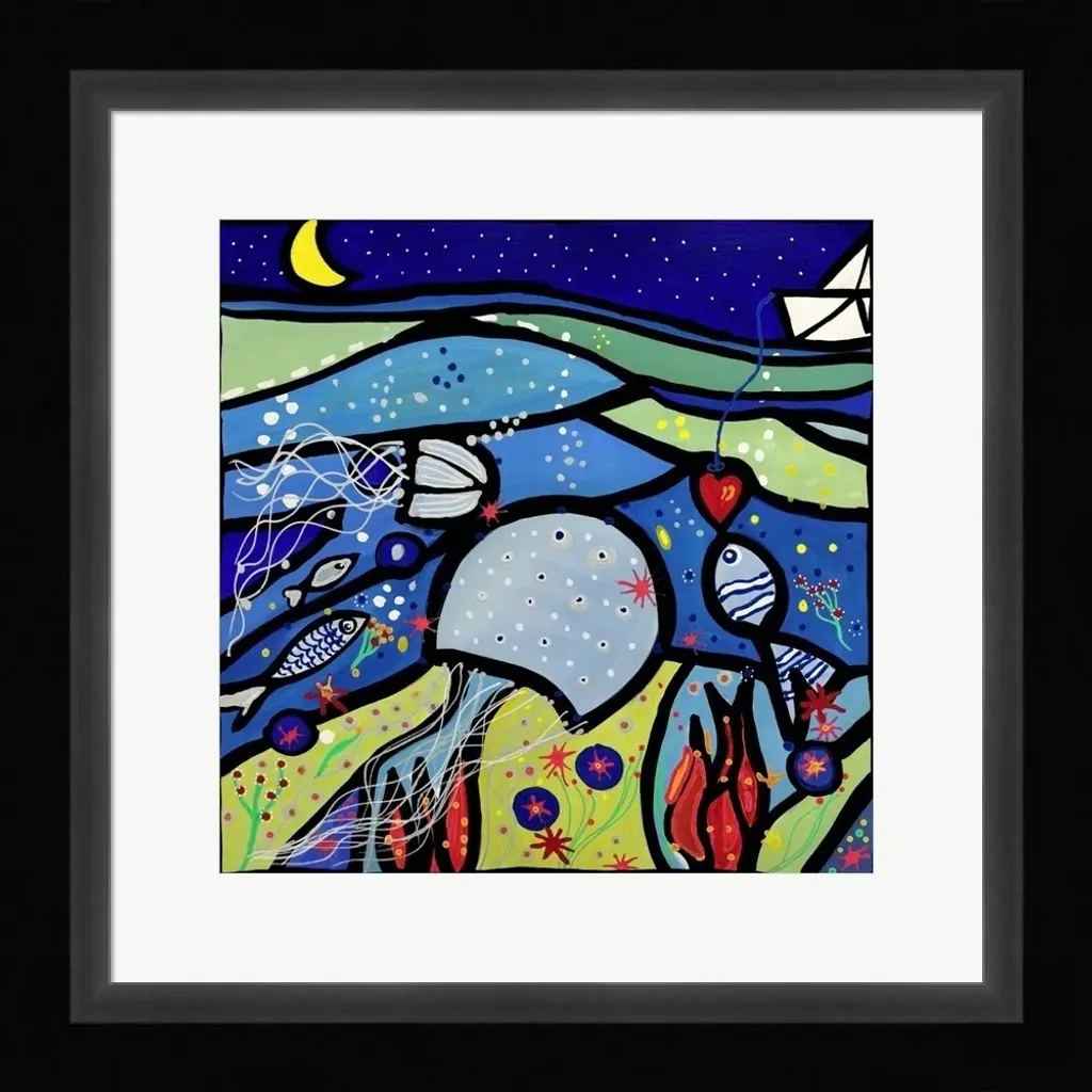 Ancorati al Cuore by Wallas is a high quality piece of framed artwork. The finished size of this piece is 23" X 23". It has a Black Slant frame, is single matted and finished with high quality Acrylic Plexiglass.