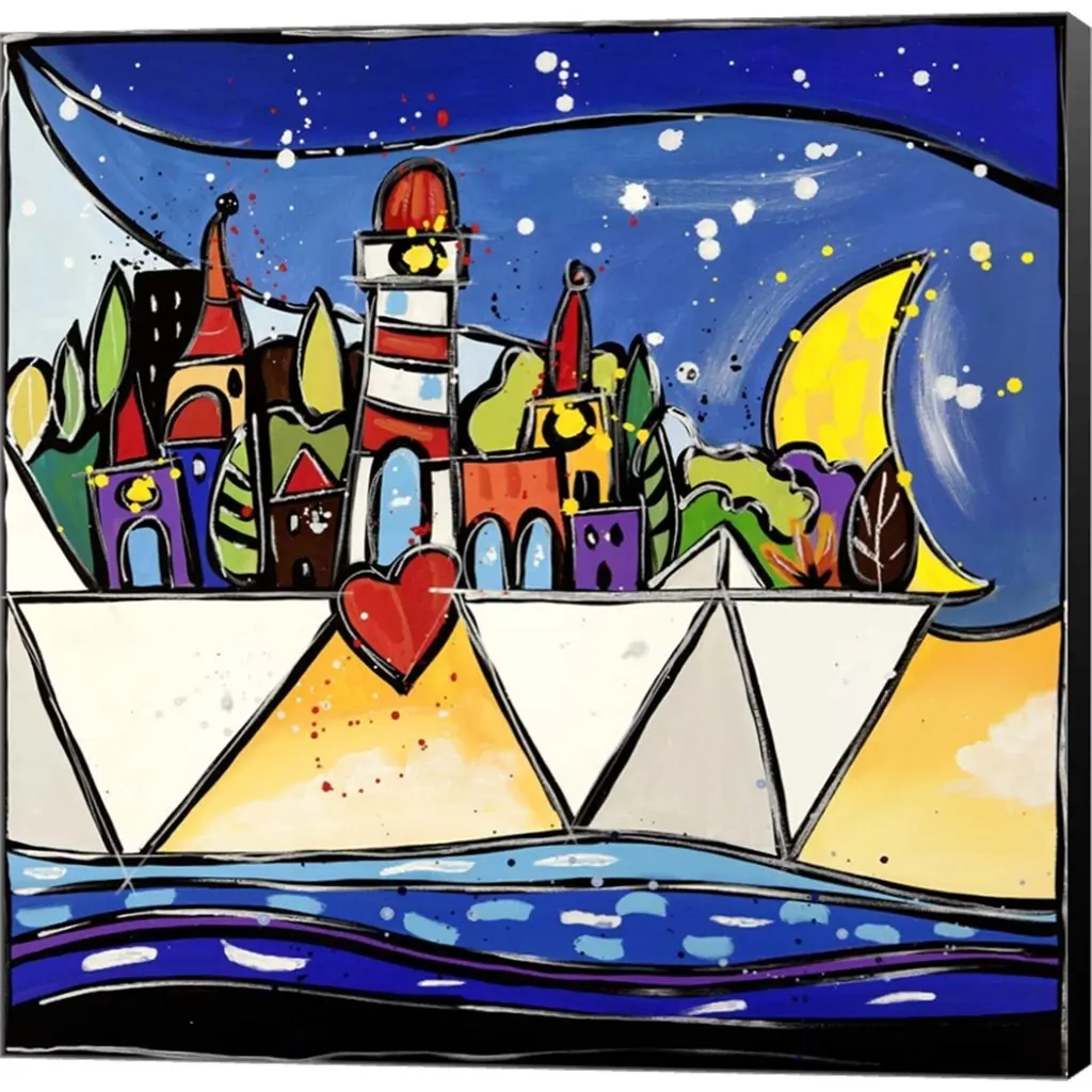 Congiunzione by Wallas is a high quality piece of canvas artwork. The finished size of this piece is 24" X 24", and it has a depth 1.5" with black painted sides. There is a UV protective coating over the entire image, and it is ready to hang on your wall with a standard drywall screw (not included). 100% Satisfaction Guaranteed.