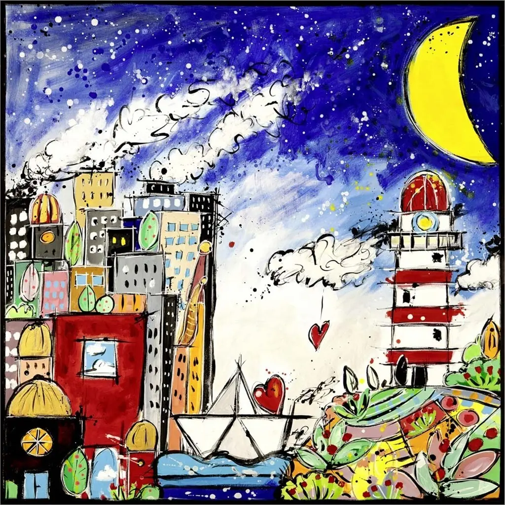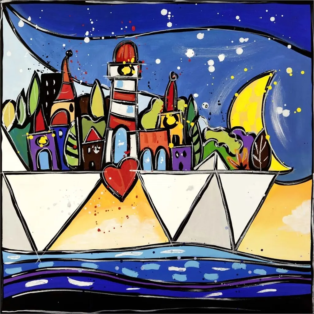 Hug by Wallas is a high quality piece of canvas artwork. The finished size of this piece is 24" X 24", and it has a depth 1.5" with black painted sides. There is a UV protective coating over the entire image, and it is ready to hang on your wall with a standard drywall screw (not included). 100% Satisfaction Guaranteed.