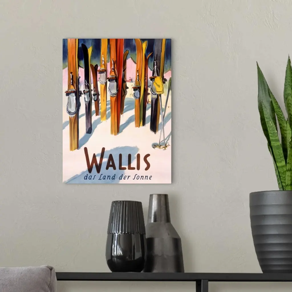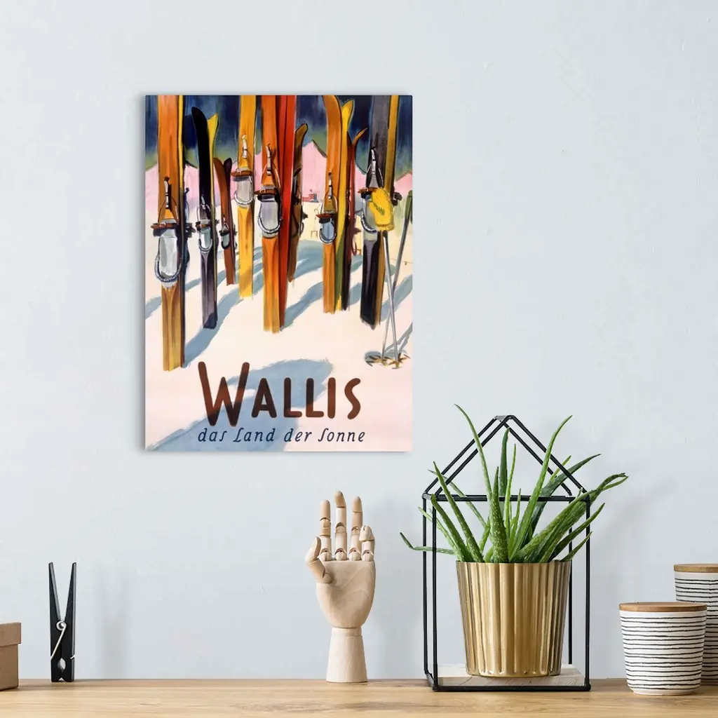Wallis, Winter, Snow, Ski, Vintage Poster