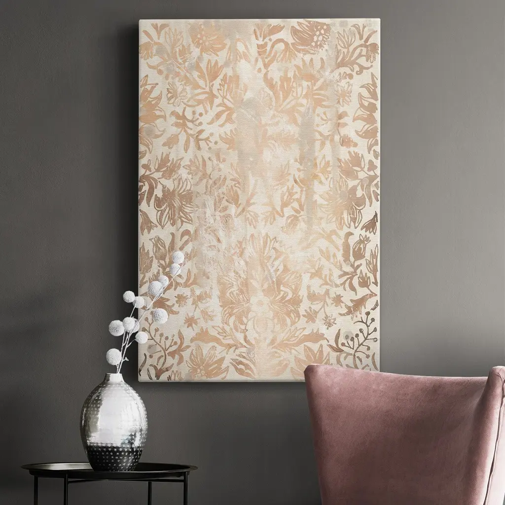 Walnut Damask I Premium Gallery Wrapped Canvas - Ready to Hang A premium hang stretched gallery wrapped canvas print created to last. Featuring a beveled a solid wood stretcher bar, each piece comes ready to hang 6 SIZES AVAILABLE 8''X12'' - Overall Size 12'X18'' - Overall Size 18''x27'' - Overall Size 24''x36'' - Overall Size 32''x48'' - Overall Size 40"x60" - Overall Size Each piece is made to order. Built to Last Each piece comes ready to hang Solid wood stretcher Fade and Water resistant Made domestically