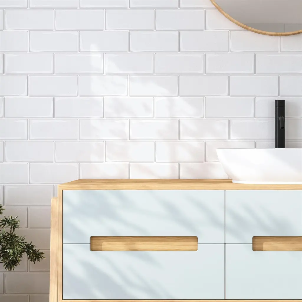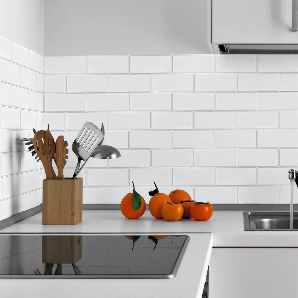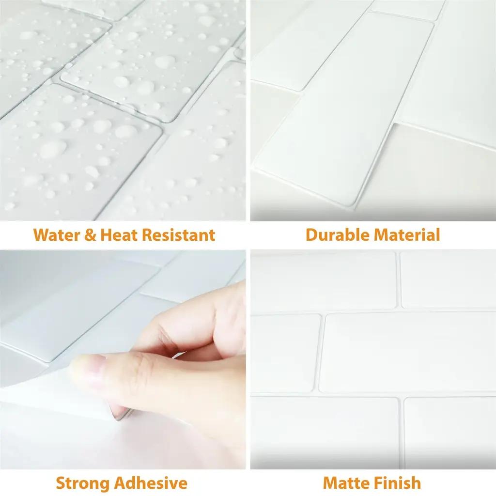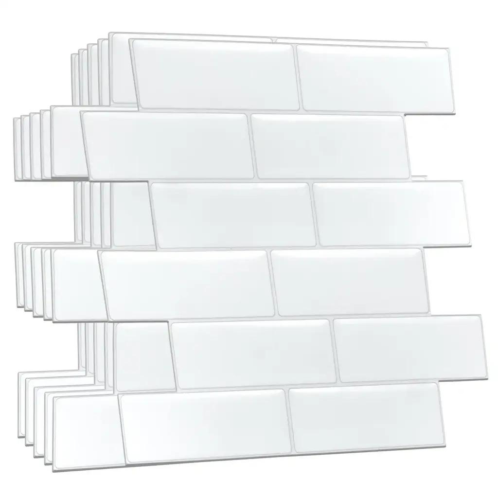 Walplus 20 Pcs Pure White Mosaic 3D Tile Sticker 12" X 6" - 20 Pcs