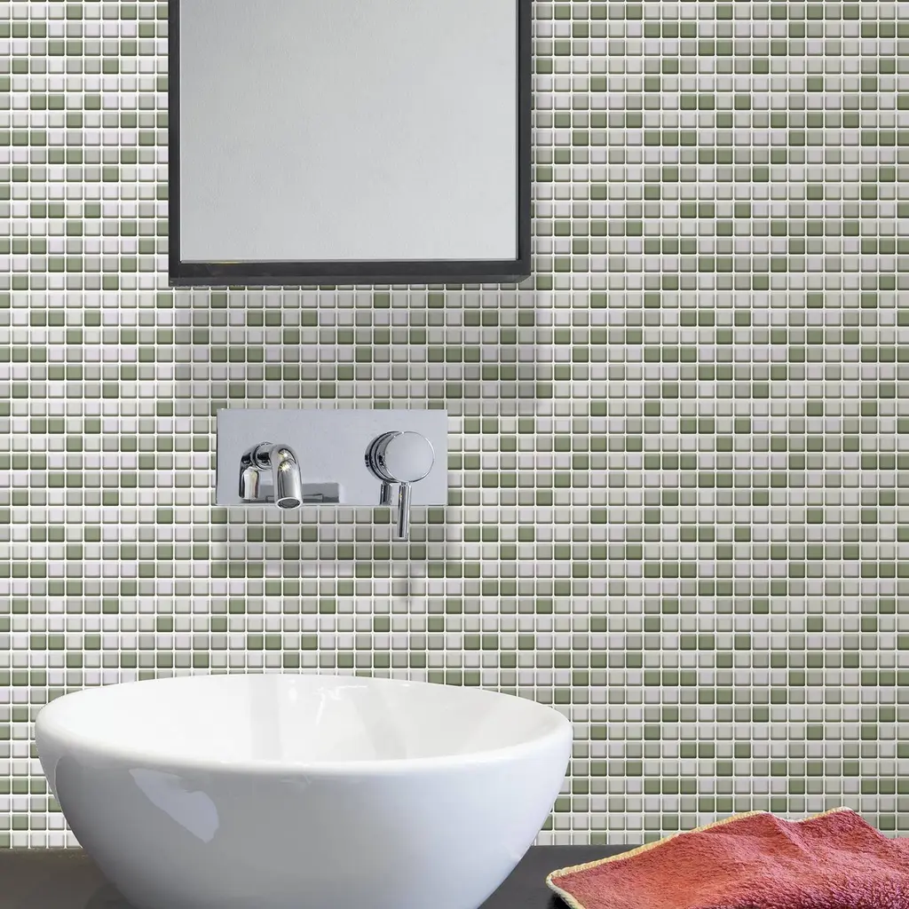 Transform your kitchen or bathroom with ease using Walplus Small Square Mosaic Tile Sticker. These 3D sticker tiles provide an instant upgrade to your space without the need for traditional tiles. Simply peel and stick onto any clean, flat surface to create a new look within minutes. The tiles are made of epoxy material, ensuring long-lasting durability and water and fire resistance. Each package contains 12 pieces of stickers that cover an area of 0.54 square meters. You can easily trim or cut the stickers to fit your desired space. Please note that you should wait at least three weeks after painting before attaching the stickers to the painted surface and clean the surface prior to application.Features:
