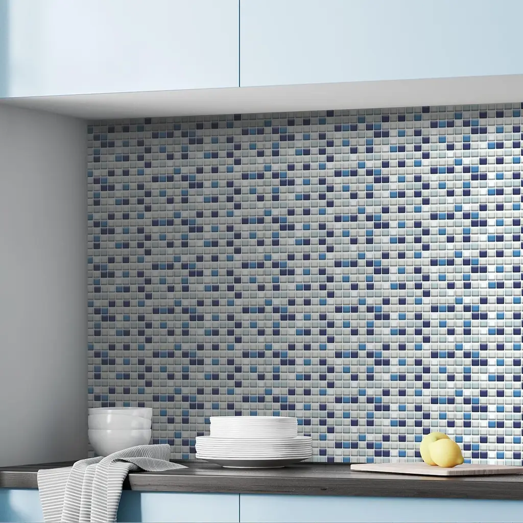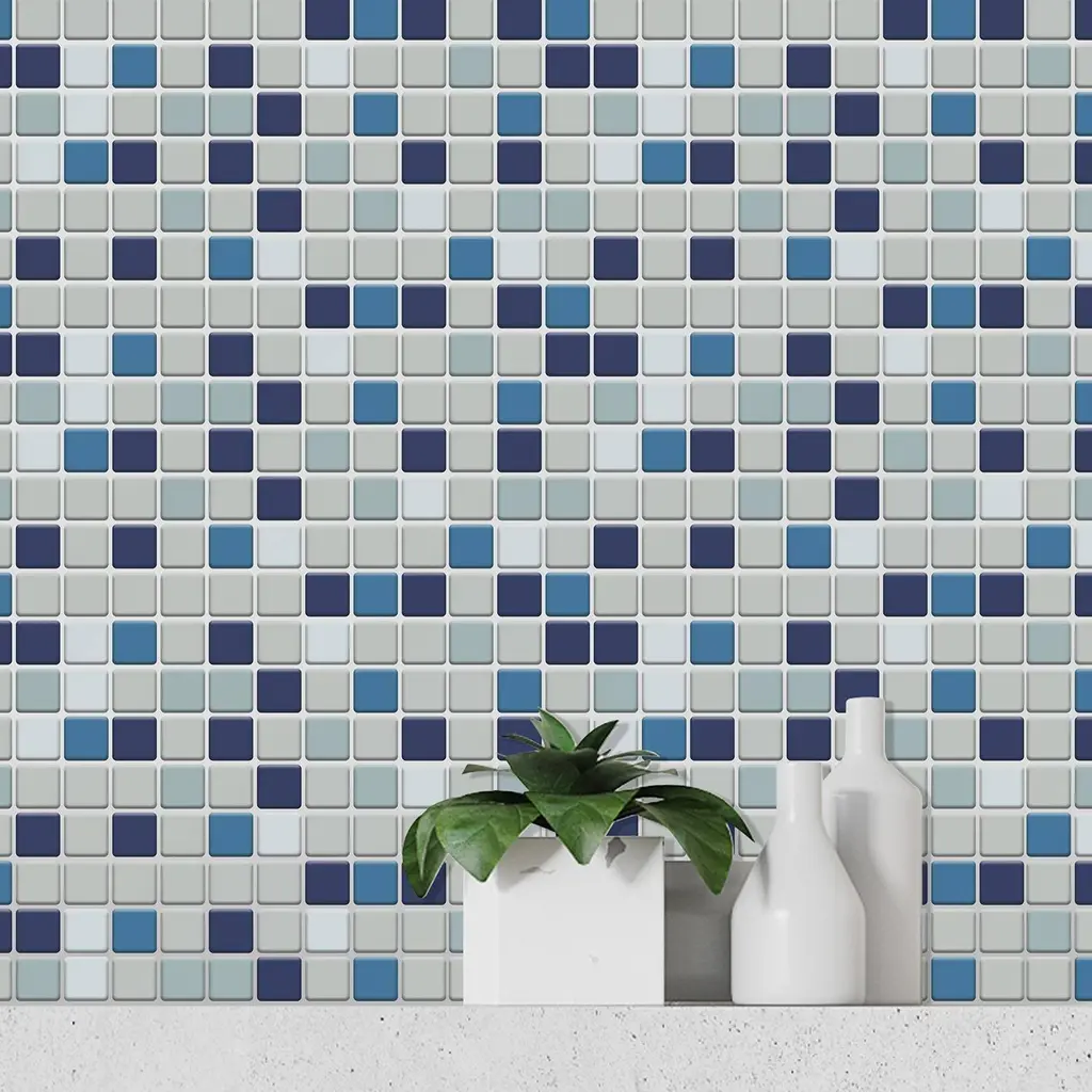 Transform your kitchen or bathroom with ease using Walplus Small Square Mosaic Tile Sticker. These 3D sticker tiles provide an instant upgrade to your space without the need for traditional tiles. Simply peel and stick onto any clean, flat surface to create a new look within minutes. The tiles are made of epoxy material, ensuring long-lasting durability and water and fire resistance. Each package contains 12 pieces of stickers that cover an area of 0.54 square meters. You can easily trim or cut the stickers to fit your desired space. Please note that you should wait at least three weeks after painting before attaching the stickers to the painted surface and clean the surface prior to application.Features:
