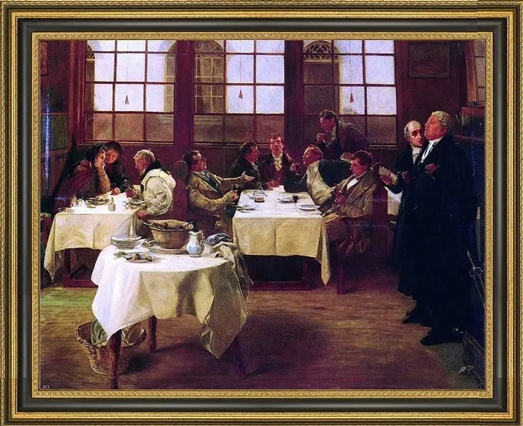 16" x 20" Walter Dendy Sadler Plaintiff and Defendant framed premium canvas print reproduced to meet museum quality standards. Our Museum quality canvas prints are produced using high-precision print technology for a more accurate reproduction printed on high quality canvas with fade-resistant, archival inks. Our progressive business model allows us to offer works of art to you at the best wholesale pricing, significantly less than art gallery prices, affordable to all. This artwork is hand stretched onto wooden stretcher bars, then mounted into our 3 3/4" wide gold finish frame with black panel by one of our expert framers. Our framed canvas print comes with hardware, ready to hang on your wall. We present a comprehensive collection of exceptional canvas art reproductions by Walter Dendy Sadler.