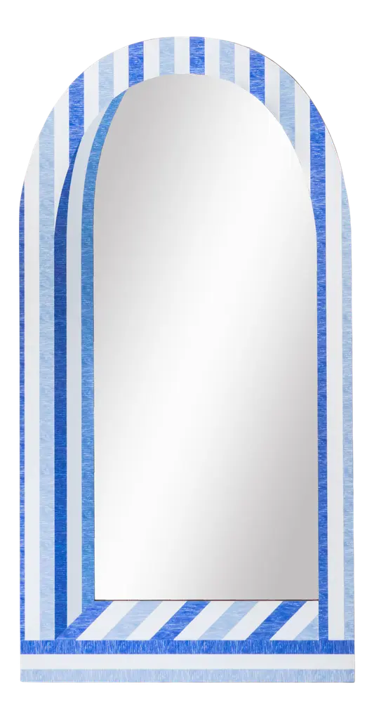 Petite Friture’s Wander mirror delights with a combination of bold colors and intriguing forms. Originally a painting and collage project by AC/AL Studio, the wall mirrors of the Wander collection are framed with tinted, translucent glass in two colors. The mirror’s hanging system leaves a 2-centimeter gap between the glass frame and the wall, resulting in a levitating effect and a beautiful halo reflection around the mirror. The Wander mirrors are equally well suited for hallways, bathrooms and living rooms and for both functional and ornamental use. With a range of sizes and color options, the mirrors can also be displayed together in mosaic-like compositions. The large Wander mirror can be hung on the wall vertically or placed on the floor leaning against the wall.