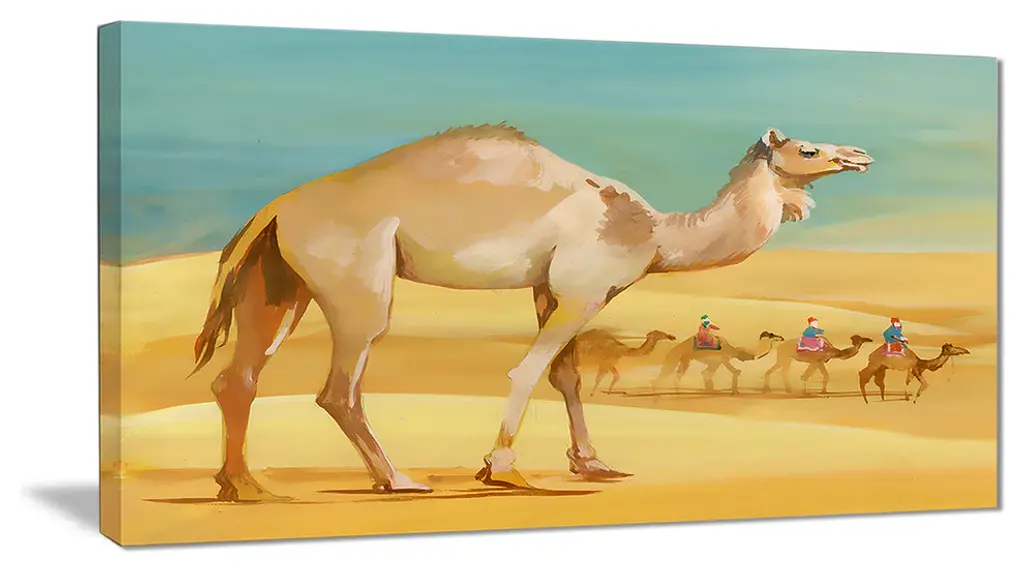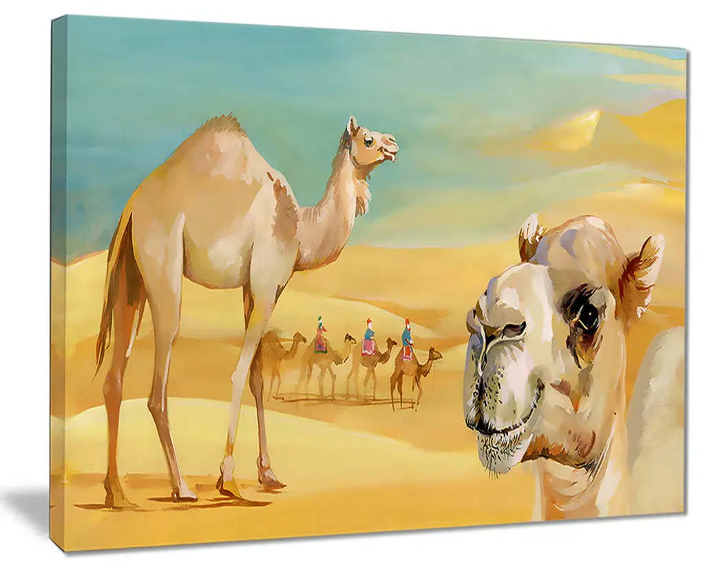 Bring contemporary abstraction to your home with this large 36W x 28H Metal Wall Art. This Wandering Camels in Desert Metal Artwork makes it the focal point of any room or office. - White gloss coating ensures colors are extra vibrant with light reflection.- Aluminum grade sheet metal with 1-inch mounting frame on the back giving the illusion that the artwork is floating on the wall.- Mounting brackets are included along with instructions.- High quality digital images are created directly into a glossy aluminum panel producing a stunning and captivating print into the glossy finish of the metal.- Water, fire and scratch resistant HD aluminum panels.- Looks better than any photo paper and guaranteed to last at least 20 years- Easy to clean with a microfiber cloth. Colors are far superior to regular canvas art. - Easy to hang
