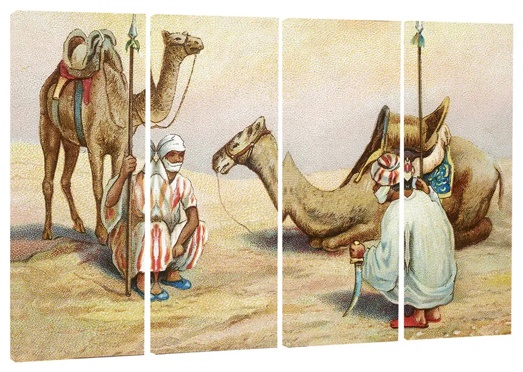 "Wandering Camels In Desert" Watercolor Metal Wall Art, 3 Panels, 36"x28"