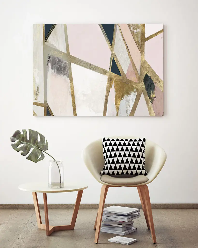 "Warm Geometric Ii Blush Version" Museum Mounted Canvas Print, 24"x36"