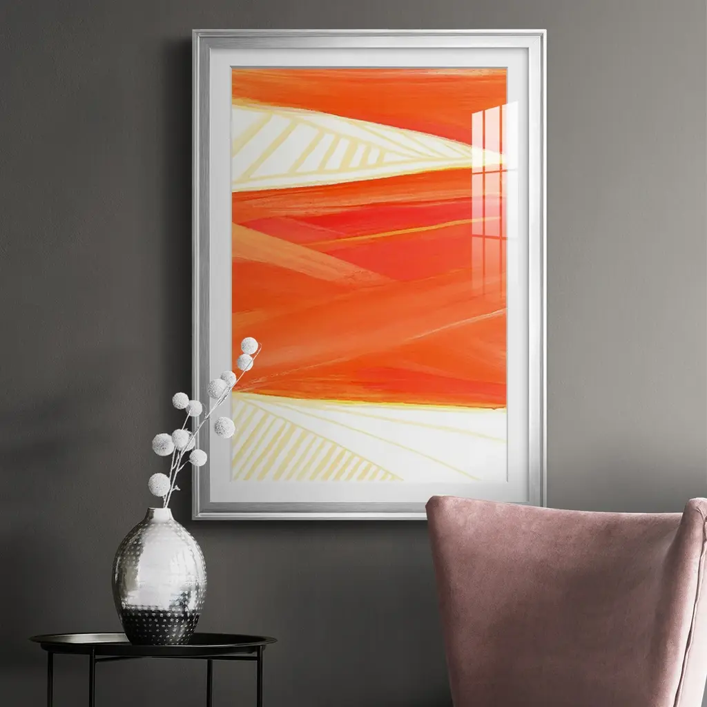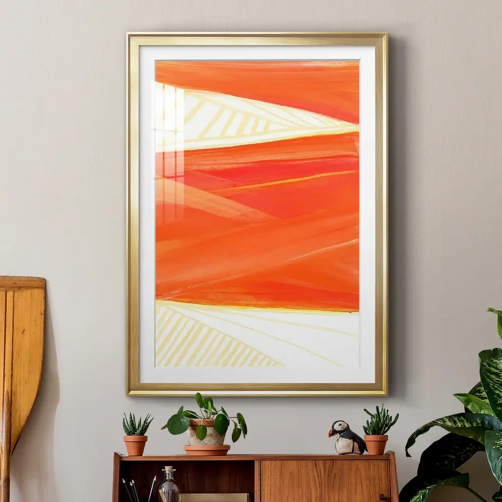 Warm Rays I Premium Framed Print - Ready to Hang A Premium Framed Print created to last. Framed in distressed wood and available in an array of sizes and colors Featuring a beveled a solid wood stretcher bar, each piece comes ready to hand 4 SIZES AVAILABLE 30.5''X42.5'' - Overall Size 26.5'X36.5'' - Overall Size 22.5''x30.5'' - Overall Size 18.5''x24.5'' - Overall Size Each piece is made to order. Each piece comes with hanging hardware. Made in the USA Ready to Hang Giclee Paper Print Acrylic Glass Beveled Matt Board
