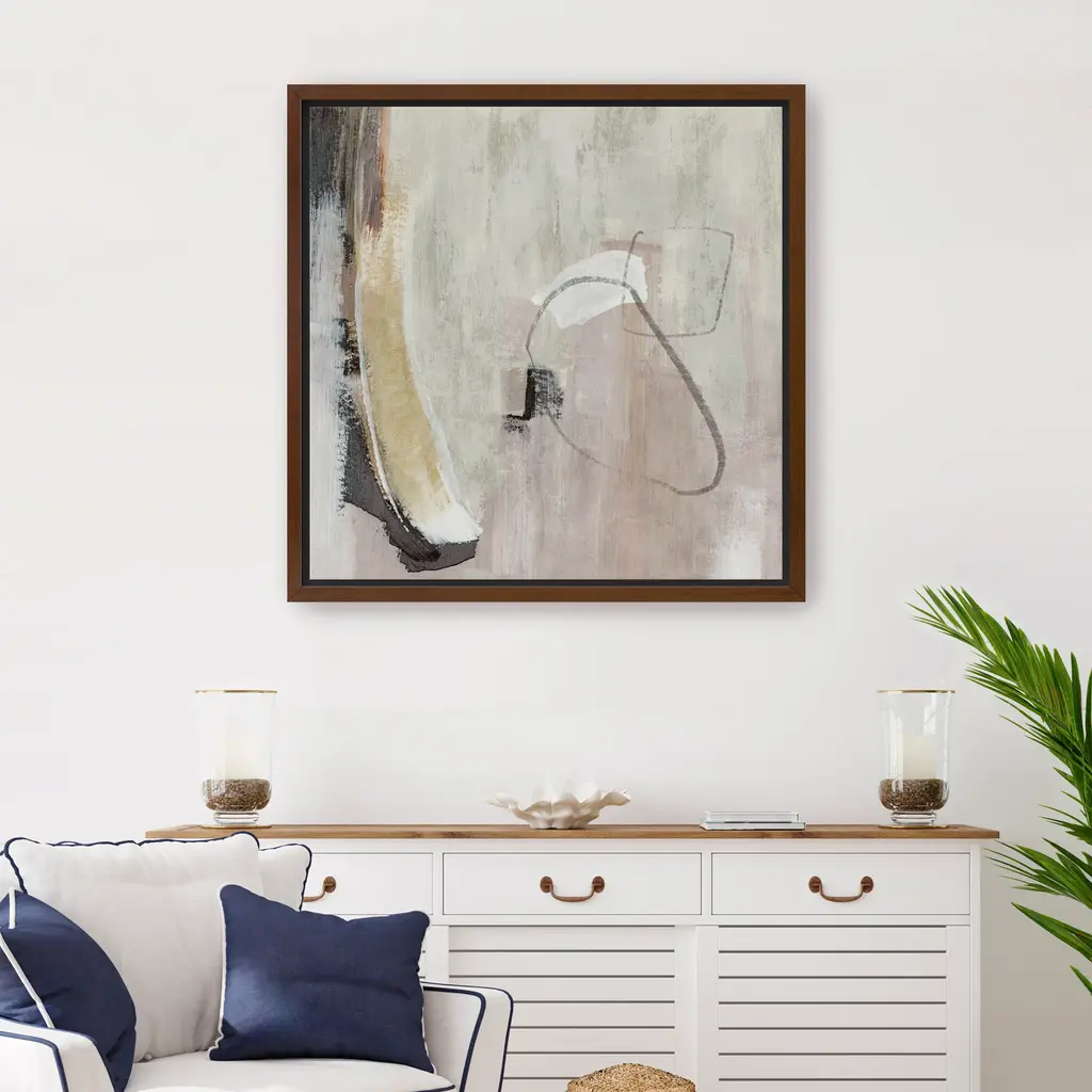 Elevate your home decor with this stunning neutral canvas abstract art "Warm Simplicity I". Featuring a harmonious blend of soft, earthy tones, this artwork adds a touch of sophistication and tranquility to any room. The subtle hues create a serene atmosphere, making it a perfect addition to both contemporary and classic interiors. Available in black frame, dark walnut frame, oak frame, or as a wrapped canvas. Our Gallery Wrap Canvas Prints are proudly assembled with high quality materials in California, USA. Each piece is printed on a thick, archival grade canvas using Giclee technology. It is then hand-stretched by our experienced artisans over solid wood bars, which will not warp over time. The final product is a piece personally crafted for you to confidently display on your wall. Care and Assembly: Ensure that the location of your piece has little to no exposure to heat, sunlight, and moisture. Wipe clean, only if needed. Each piece includes a sawtooth hanger to hang on your wall horizontally.