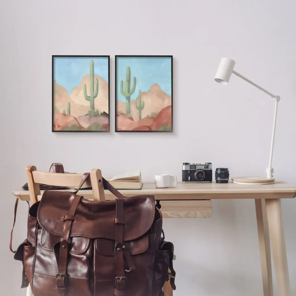 Warm Sunny Desert Cactus Western Landscape, 2Pc, Each 11 X 14