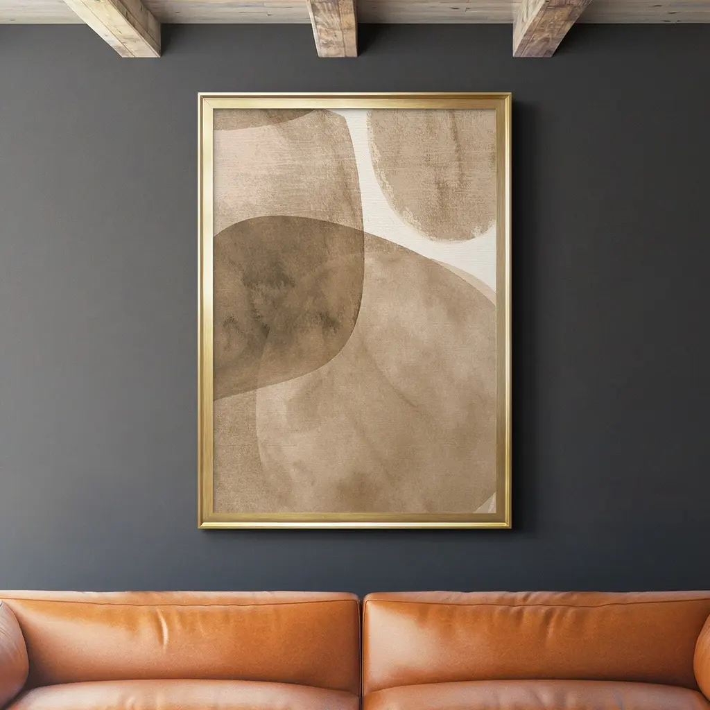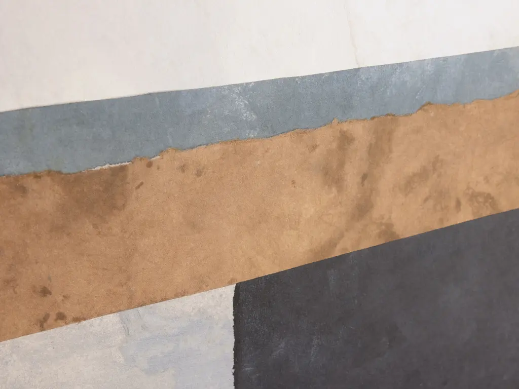 Textural and abstract in a warm color palette, Warmth of Color is a reproduction print of the original piece which featured torn and layered geometric shapes mingling together. Artist Richard Ryder explores different mediums and art styles to challenge himself, finding unique ways to incorporate his passion for art deco design and movement seen in traditional animation. Gallery wrapped giclee print on fiber canvas. Features a natural wood frame. Hangs vertically or horizontally from back-mounted D-rings. Artist: Richard Ryder