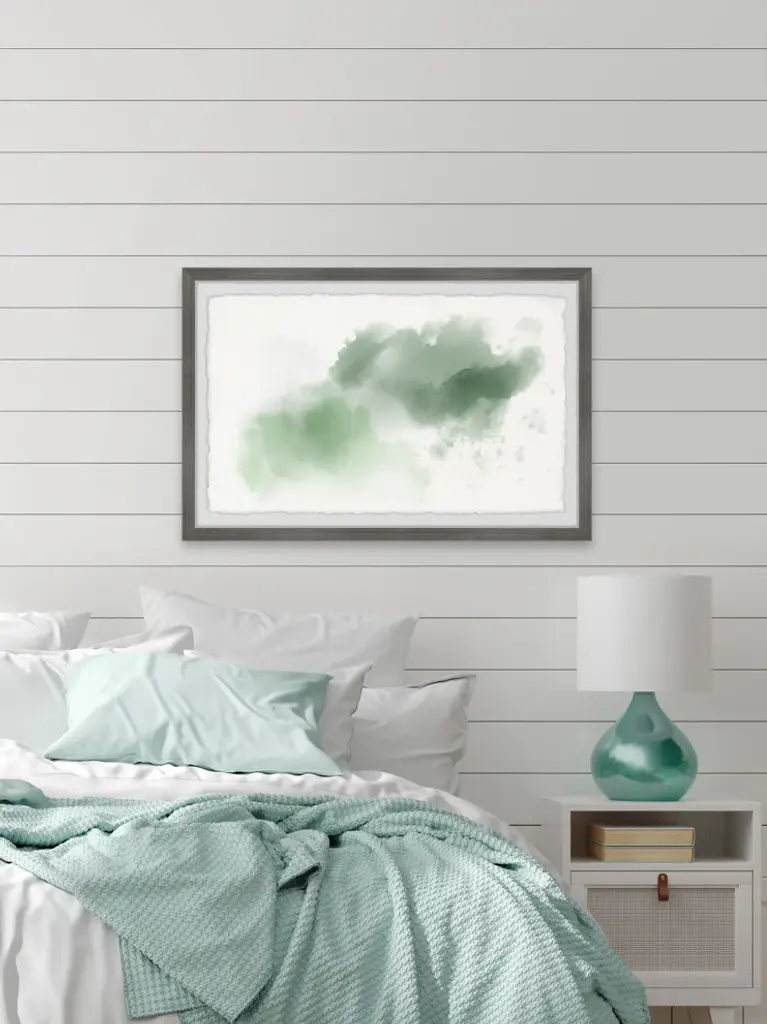 Add a touch of serenity into your modern living space with this painting print that features a cloud-like green abstract watercolor design. Proudly printed in the USA, this piece is printed on high quality archive paper and professionally hand-framed. With wall-mounting hooks included, this artful accent is ready to hang up as soon as it reaches your front door.- Top quality Giclee print on high resolution Archive Paper- Hand cut deckled edges- High quality durable non-warping frame- Finished under shatter resistant plexiglass- Arrives ready to hang- Includes a certificate of authenticity- Printed in the USA