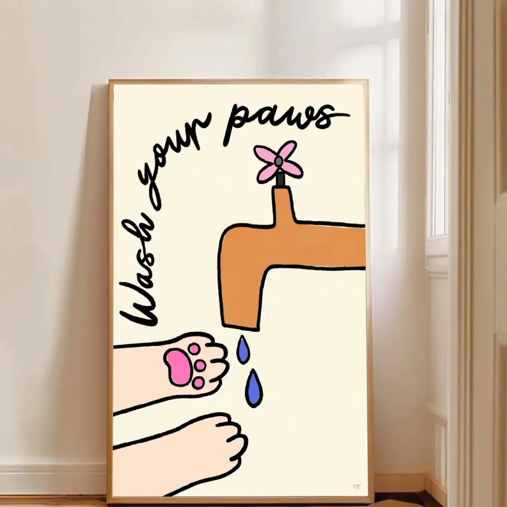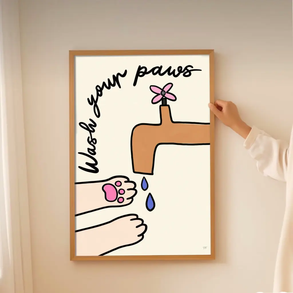 Wash Your Paws - Art Print - LargeIllustrated by Maria. This print is perfect for all cat lovers alike! Printed in the U.K.Printed on premium matte, fine art, archival paperPaper weight: 230 gsmSold without a frame.