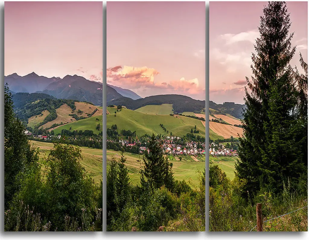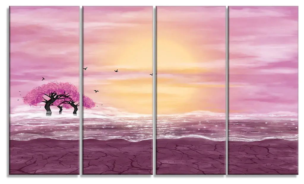 "Water And Pink Trees In Desert" Landscape Art Canvas Print, 4 Panels, 48"x28"