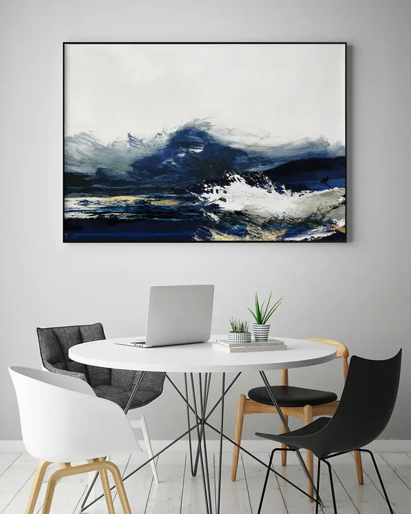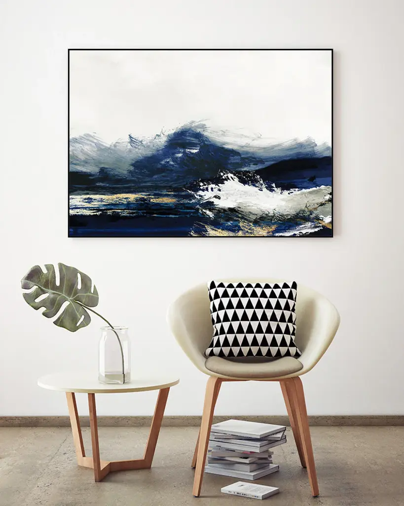 Your ready to hang artwork is printed on canvas then stretched and mounted to a 2-inch thick - hand stained black wood frame. Arrives at your door complete with an easy to use self-leveling hangking kit.