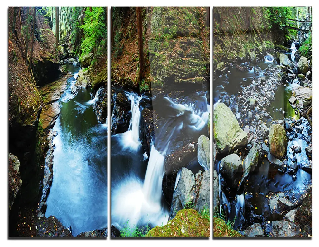 "Water Flowing Over Rocks" Photo Metal Wall Art, 3 Panels, 36"x28"